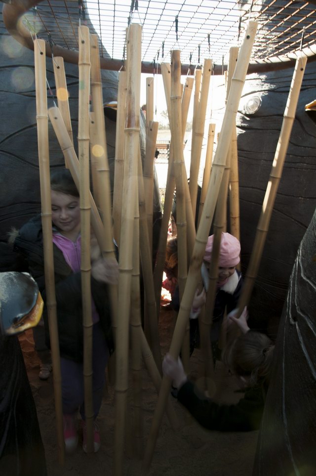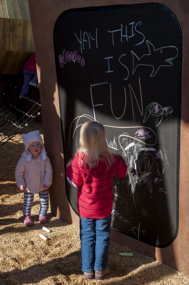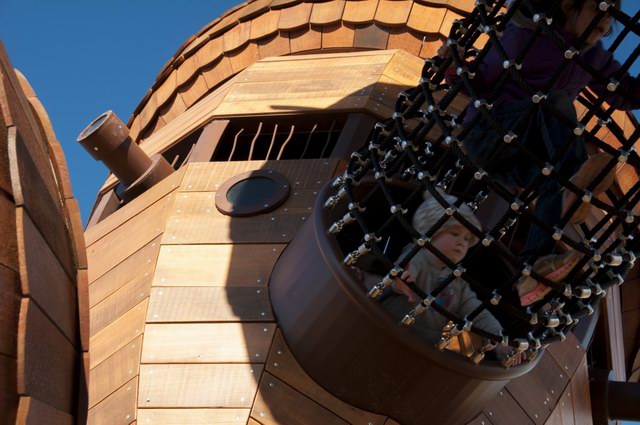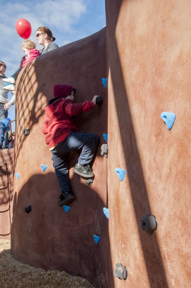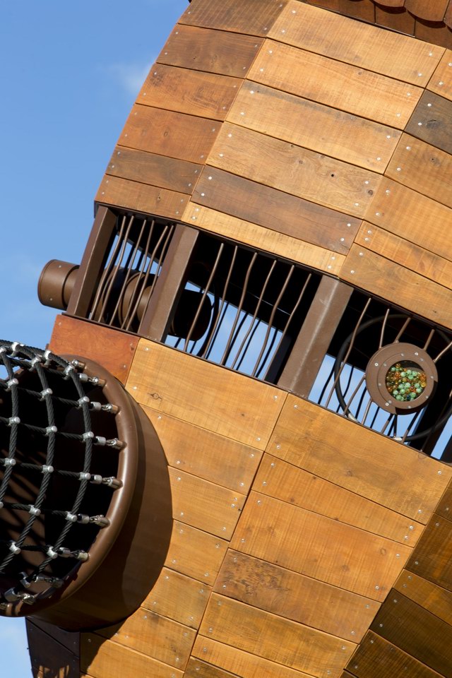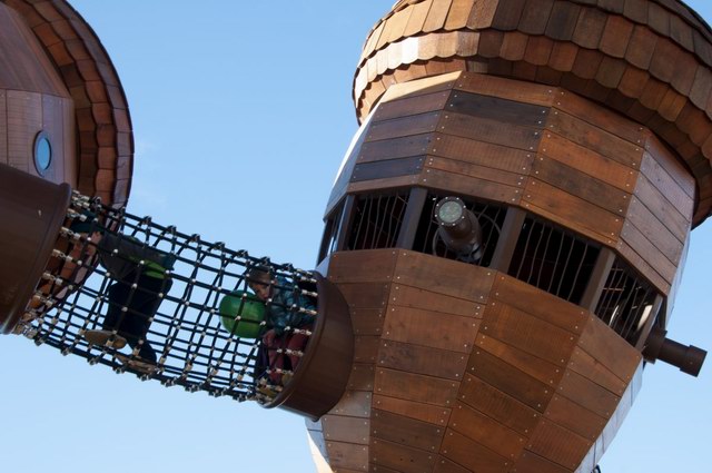 Taylor Cullity Lethlean将游乐场设计成了一个小型的主题公园,主题当然是围绕着植物进行。你可以看到巨大的橡子小屋被挂在天空,“橡子”之间有管道连接,孩子们可以从这颗“橡子”爬进那颗“橡子”。还有巨大的山龙眼(Banksia,澳洲著名的代表性植物之一)圆锥体坐落在森林地表。