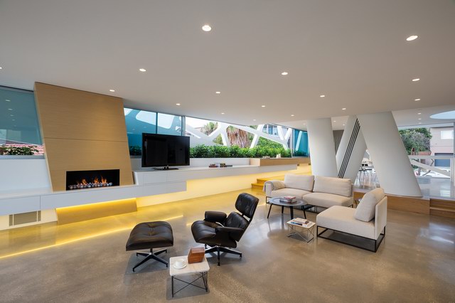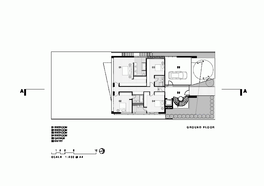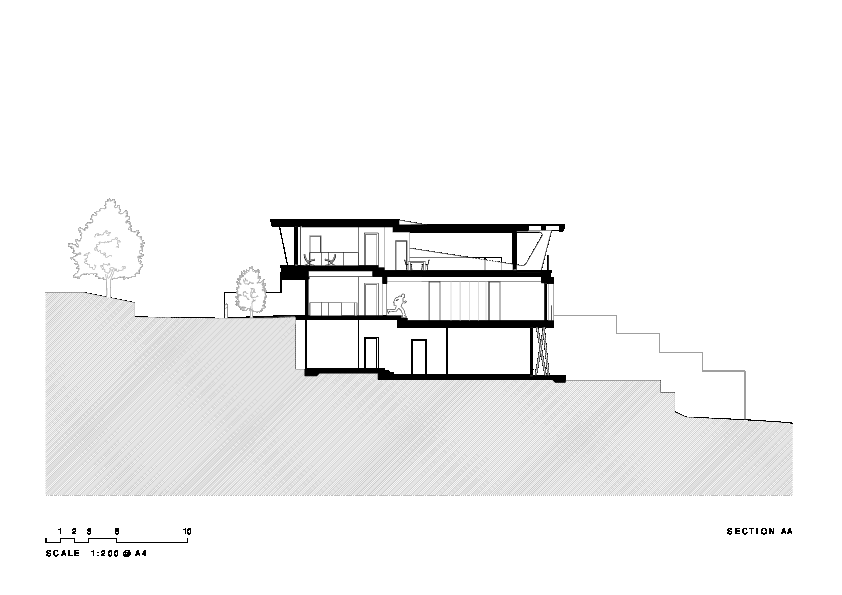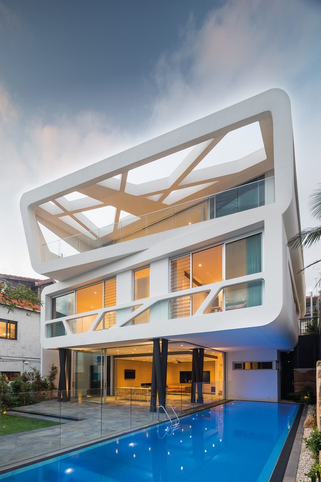 这座充满未来感的住宅(Hewlett Street House)位于澳大利亚勃朗特(Bronte)北翼的海边,面向海滩。MPR的设计着重体现在住宅高处的生活空间,那里拥有更多的阳光以及一流的视野。卧室和休息空间安排在相对私密和安静的建筑中层。底层相对喧闹,所以安排了花园和泳池等设施。