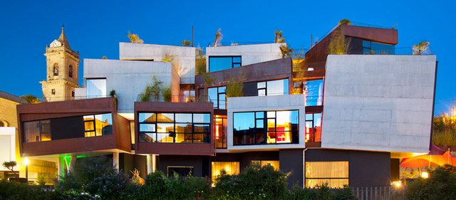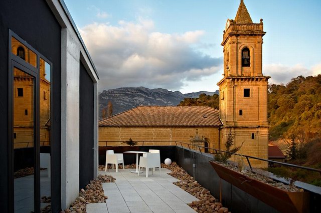 酒店前身是一个酒店,当初建造时,并没有破坏周边的建筑与环境,而是在传统建筑中“衍生”出全新的建筑形式,不对称的由中间向两边倾斜,每个房间独立开来的设计就像一个个盒子堆砌起来一样,虽然这种设计极具现代特征,但是它并不显得突兀,而是于旁边建于1953年的San Andrés教堂相映成趣,和谐共存。酒店的内部装饰大走现代简约路线,用“简装修、重装饰”的理念打造富有设计味道的生活空间,每个房间的落地窗以及阳台都可以看到周边漂亮的原生态景色,只有当你置身其中才能体会到设计师对历史的尊重。