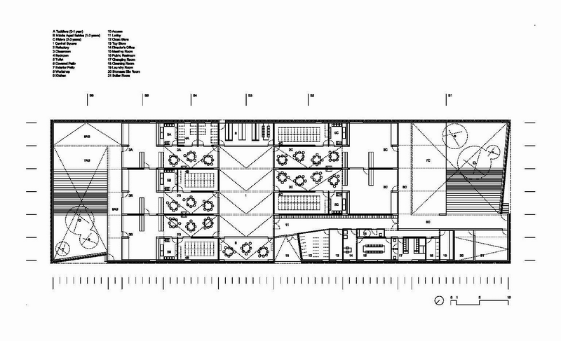 设计团队的灵感来自于美国著名建筑大师路易斯·康(Louis Isadore Kahn)对于学校的理解,康曾说过,“人生的第一所学校应该让他们认识到,在这里不是在学习,而是在玩耍过程中学到知识”。抱着对康的认同观点,该建筑的空间布局在设计中扮演了重要的角色。建筑中安排了一个宽敞的活动大厅,是一个集会,交流和游戏的理想场所,围绕着该空间,其余功能有组织地分布展开。