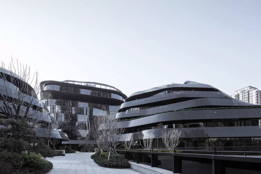 这个办公建筑像一幅展开的山水画卷,又像是一组盆景