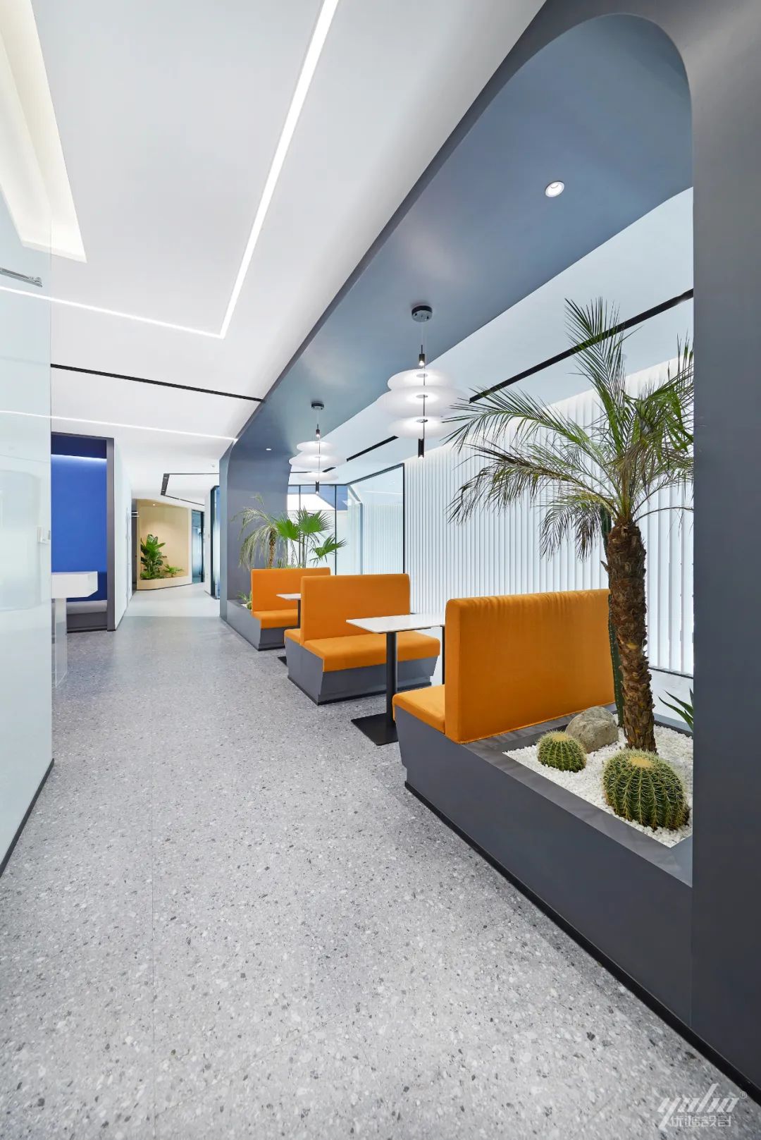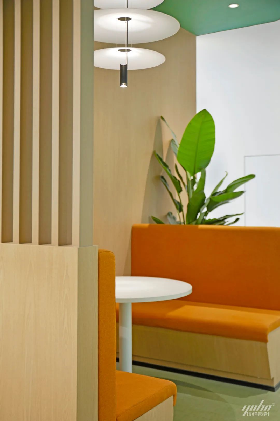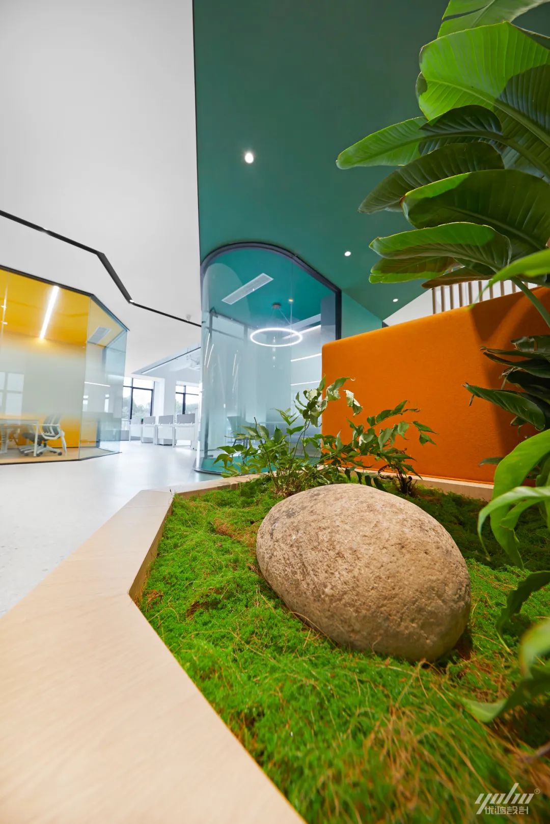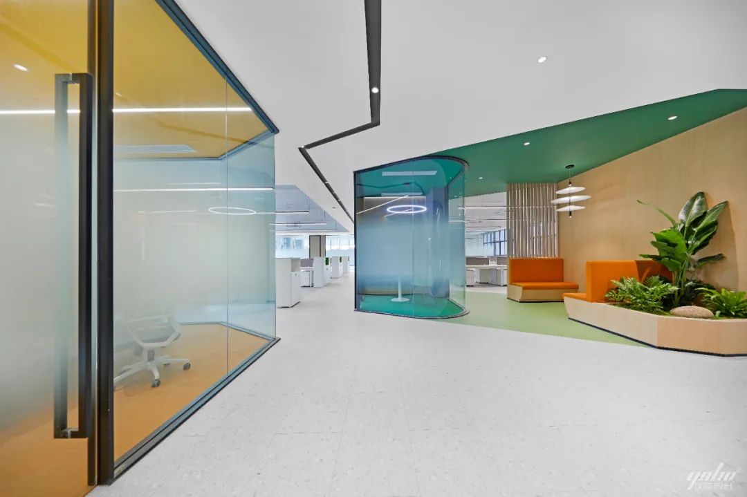 工作空间被治愈的色彩和植物构建的“绿”点亮,激起了一汪宁静的涟漪,安抚着员工紧张而忙碌的工作情绪,同时为空间增添一抹灵动、一股生气。