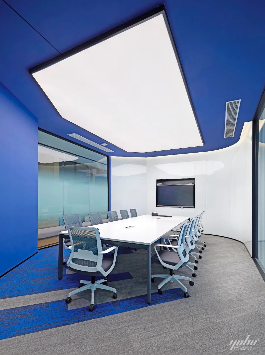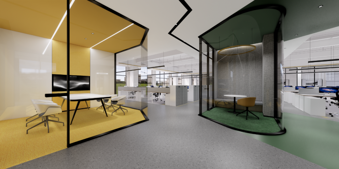 通过摒弃传统装饰材料,选择通透的玻璃、轻柔的地毯,以塑造灵动轻松的会议空间氛围,串联起人和空间的鲜活关系。