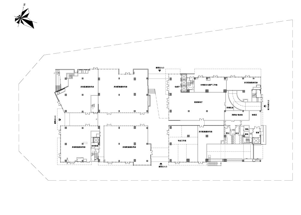 面向中轴我们还提供了一个朝向街角的城市阳台,以及引导与承接公共人群的室外剧场空间,创造积极的城市界面,与中轴充分互动。而朝向街角的城市聚场,提供了人群驻足与交流的场所。