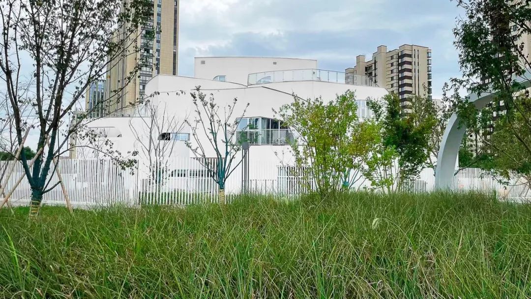 建筑掩映在公园的绿色中,成为公园景观的中远景。通过窗户和露台,公园又成为建筑的外景。公园广场中的管理用房,与幼儿园采用相同的建筑语言,暗含了相互间的应答。就像戏曲的拖腔,在观众的心内萦绕回响。