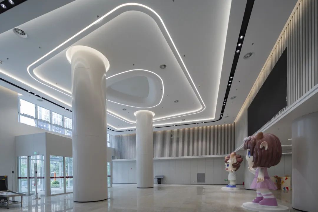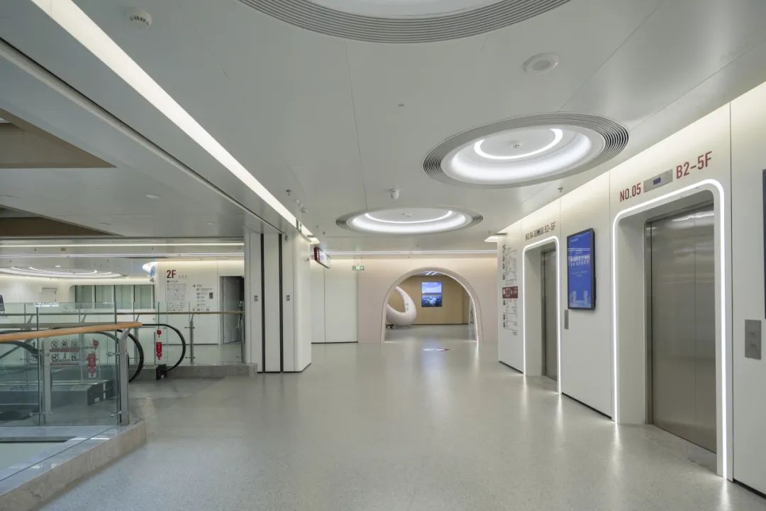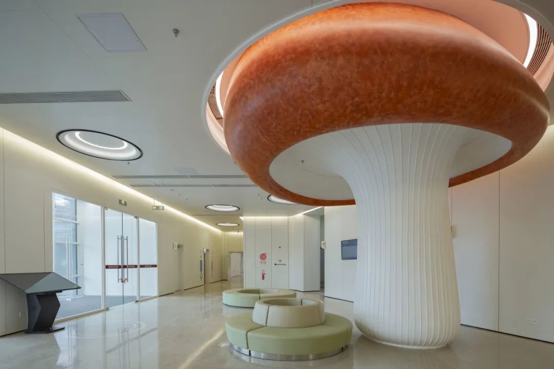 该项目建设重视展现人文关怀。门诊大厅内的一座大型DNA双螺旋造型的艺术装置,不仅象征着生命科学的奥秘,也体现了人类对未知世界的探索精神。此外,新院区的室内色彩方案遵循了莫兰迪色彩法则,体现了对妇女儿童的人文关怀,并使这座主要服务妇女儿童的医疗空间色调更加温馨舒适,充满了对生命的尊重和热爱,为患者和医护人员创造了一个更加和谐、舒适的工作和康复环境。
