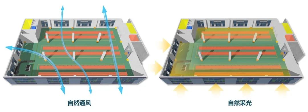 屋面空间可供企业设置光伏发电板,隔离温度的同时,为企业补充能源,减少用电量。