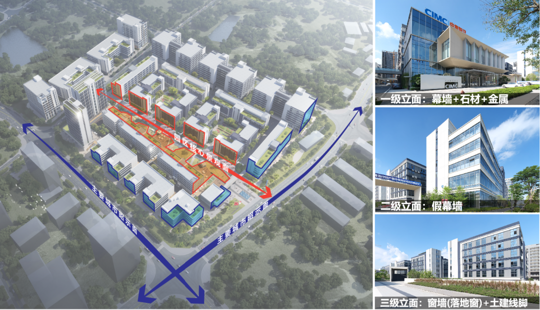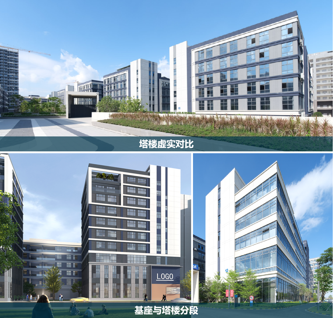 2.5容积率为前提,以“轴-院-组”三个层次处理建筑群体关系,园区规划组织系统高效,逻辑清晰,分区明确,形成花园式低密度园区。每栋厂房均“有院有面”,精准直击客户痛点(外溢改善型),与周边传统园区拉开差距。