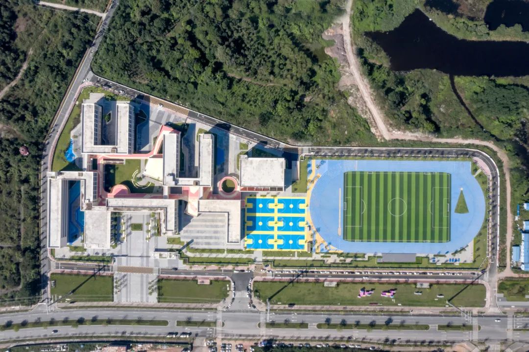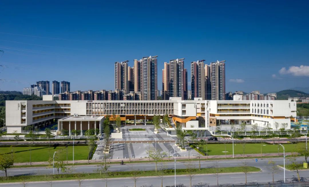 项目位于惠州市惠城区,虽然项目用地较狭长,但63391.45㎡的用地面积和平坦的地势,还是让习惯了市中心里高容、高密校园模式的我们眼前一亮,偌大的场地令人心情舒展,思绪也开始蔓延开来。