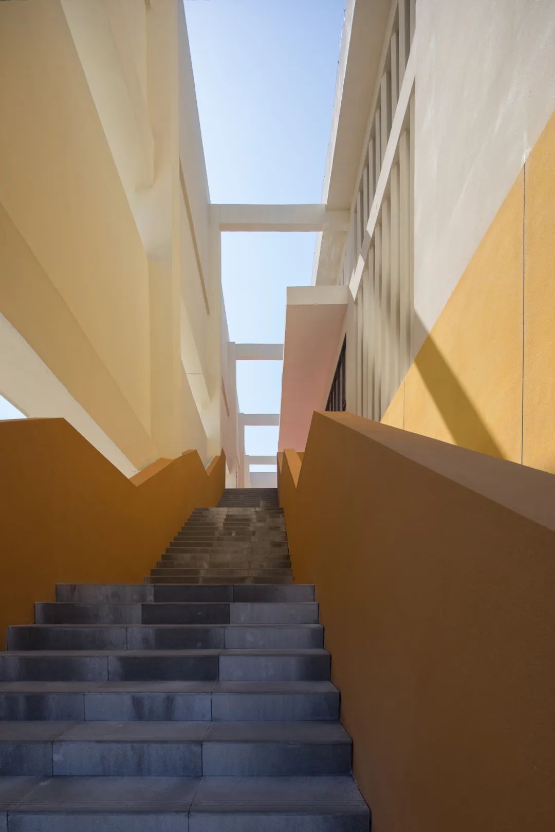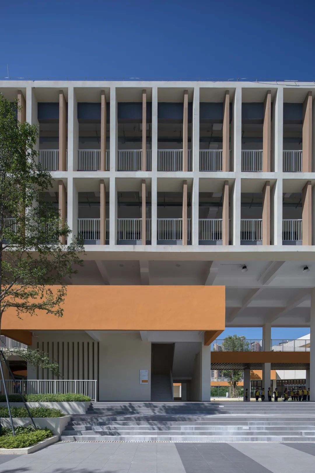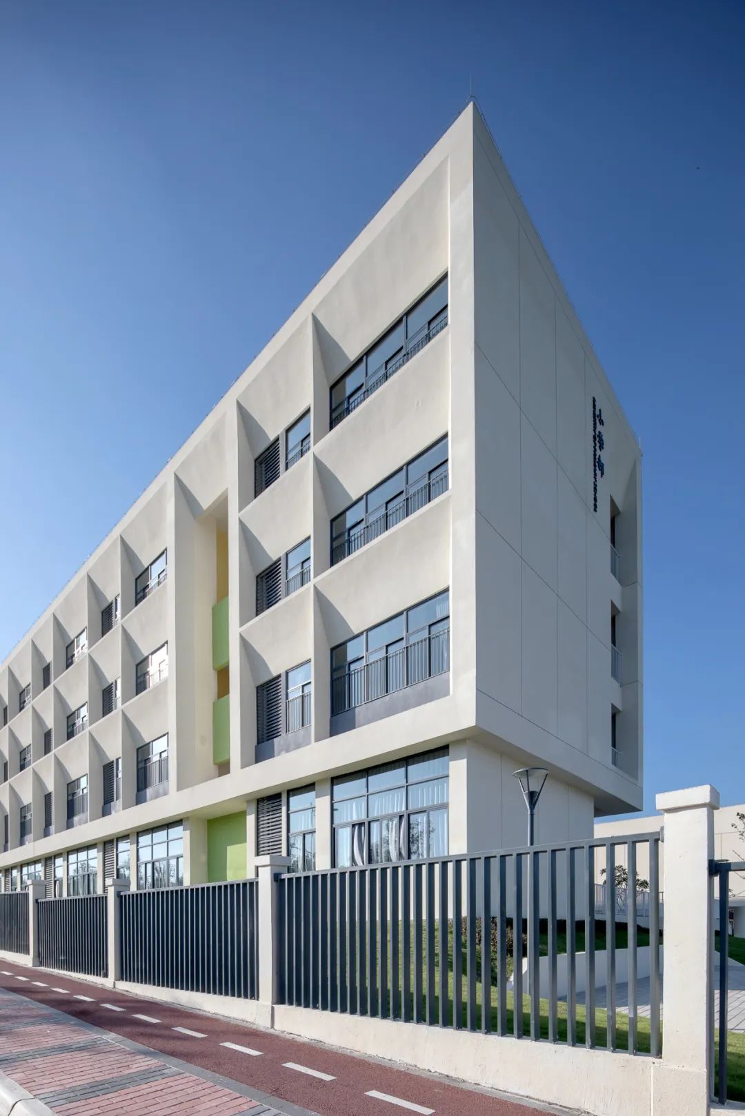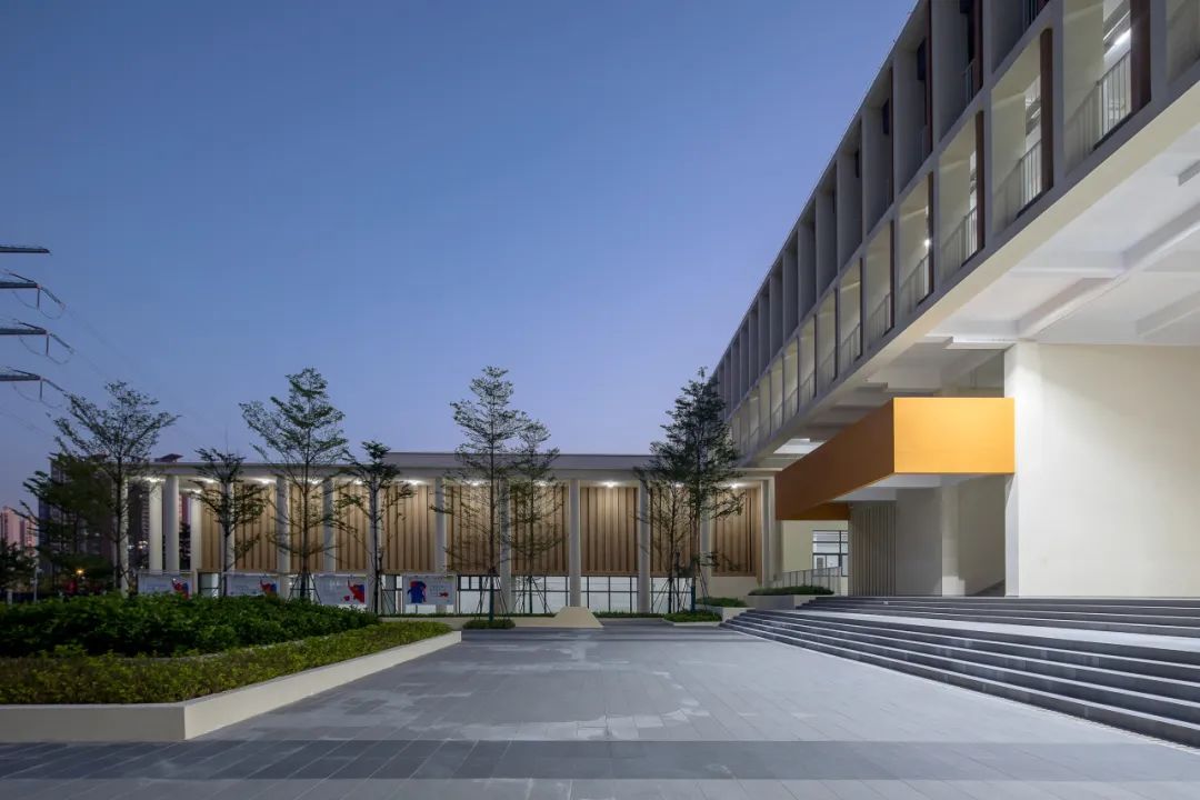 校园的主色调以白色、黄色、橙色以及深灰色为主,大面积采用黄色和橙色等鲜艳的色彩,旨在激发校园活力,创造一个积极向上,富有创造力的学习和成长空间。