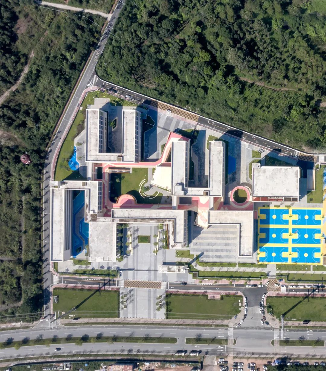 作为建筑师,我们的关注点不应该仅仅局限在那些具体指标上,要不断地对空间进行探索,这样才能设计出具有生命力的建筑。怀揣着这样的想法,金裕星河丹堤九年一贯制学校就这样出现在了我们眼前。