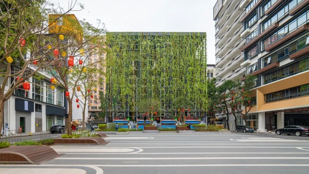 围绕园区的停车难题,同时兼顾视线通透、地下河道保护距离等要求,我们在广场南侧设置了一个20米高的立体停车场,最大限度退让出广场空间;同时得益于番禺成熟的机械停车建造技术,建成机械停车位128个。