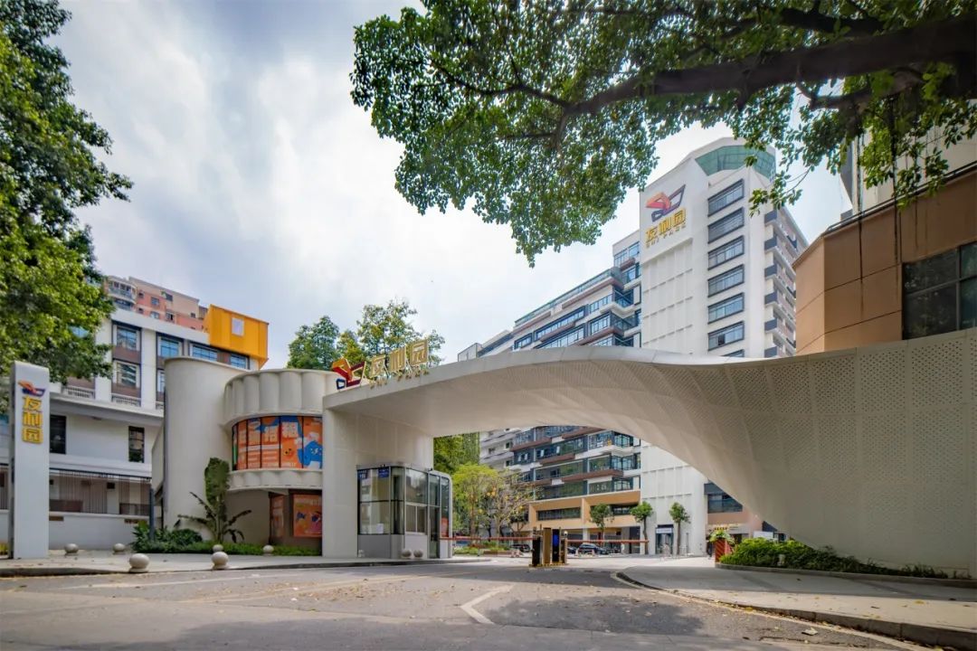 毗邻禺山大道的沿街立面成为园区的对外形象展示面,作为重点打造,其他两个主入口极其周边的沿街展示面和西侧沿街展示面都把原来零散的形象化整为零作为整体统一设计。