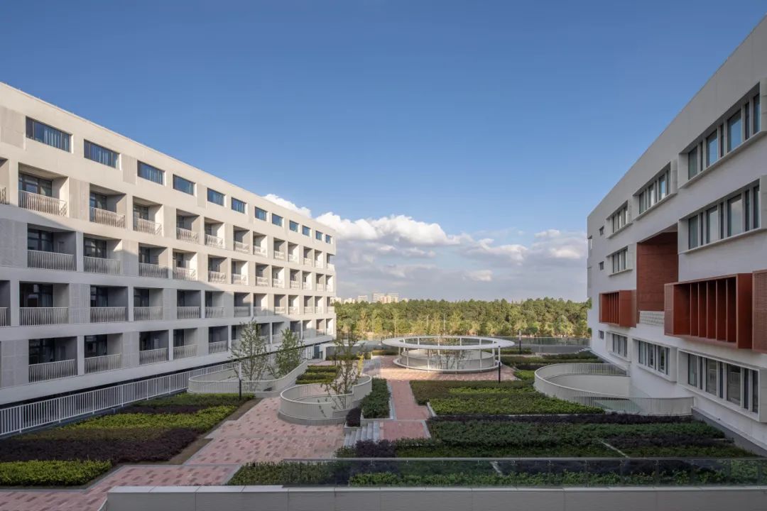 操场作为大庭院,有较高的共享性。各小庭院分属不同功能区,具有一定的私密性。内庭院空间兼具强烈的垂直指向性,有效地避免了周边建设中嘈杂的城市不利因素,营造校园本该拥有的安静、纯真的环境气质。