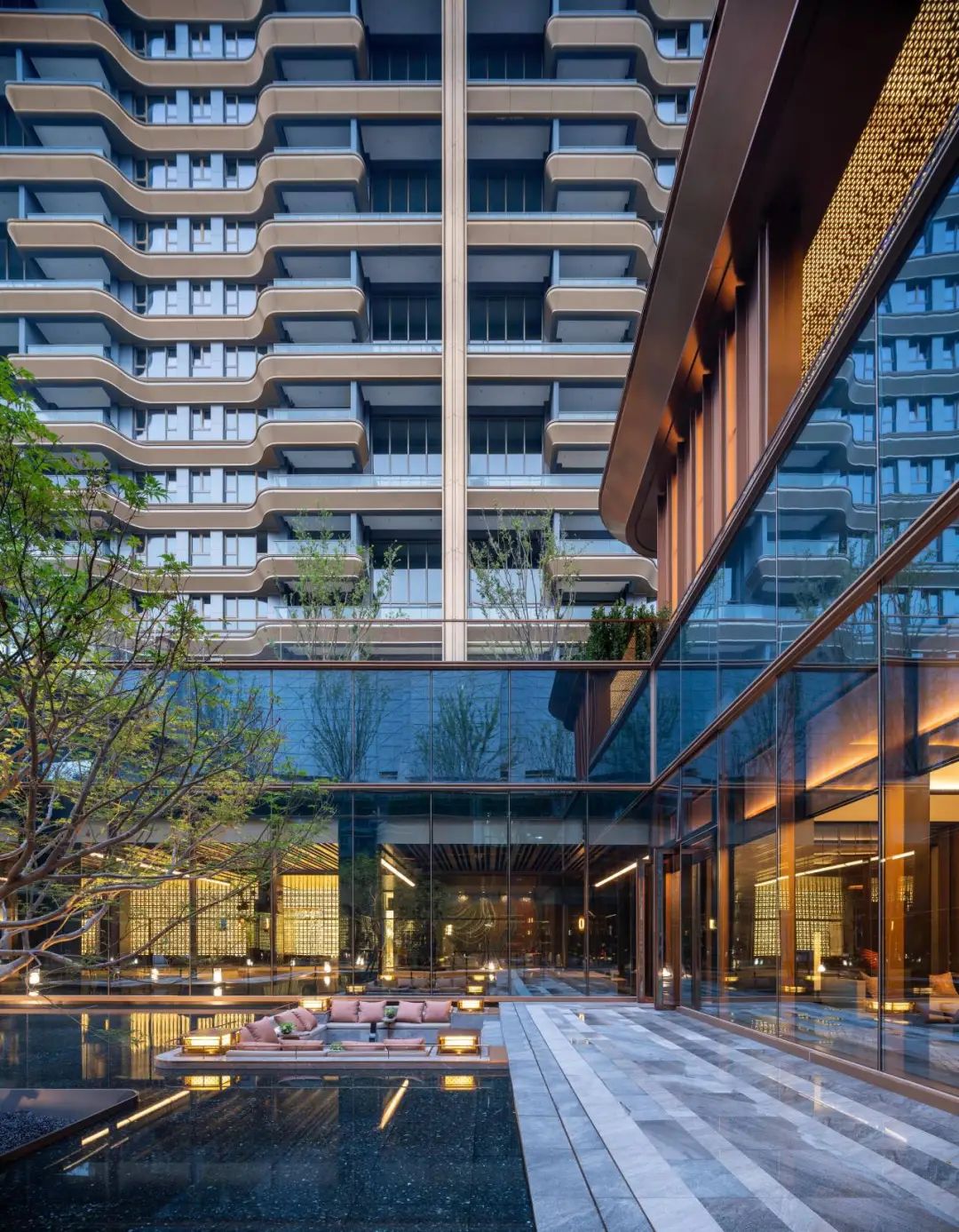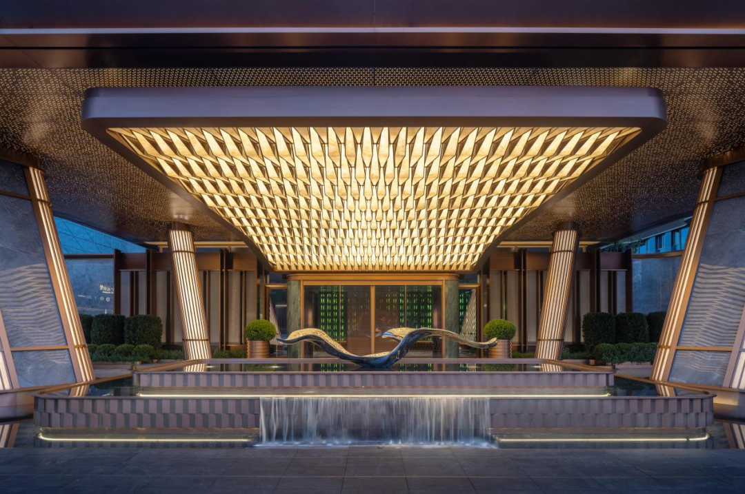 水景礼遇,琉璃光柱,巨幅灯毯,奢石景墙