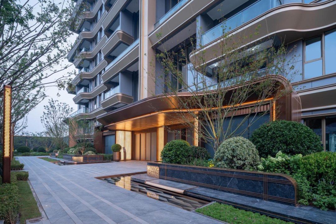 延展约77.77米的超大跨度艺术门廊,由4根巨型钢柱支撑,两侧悬挑近18米,在这里,开放、共享与封闭、私密被重新定义,创造出一个既能满足居者隐私诉求,又能融入城市脉络、自然肌理的多功能空间。