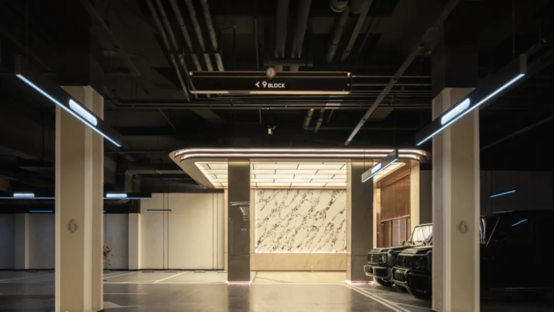 流畅的曲线作为云山墅的建筑符号,从天空延续到单元大堂、地下车库大堂,一以贯之。