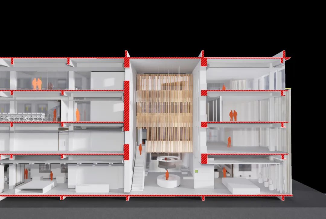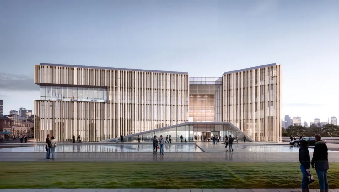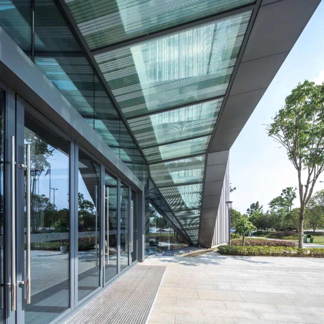 3. 入口大厅采用拉锁幕墙成为两个主要体量连接部分。