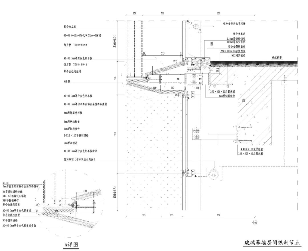 顶部与女儿墙的交接是很重要的一环:封边铝板与女儿墙包裹铝板为一个整体,后退的女儿墙近看看不到,远看与封边板一个材质和色彩,反而丰富了层次。