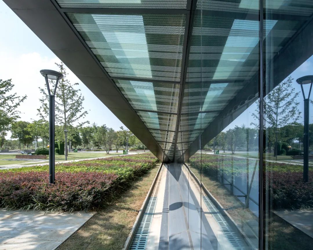 两侧走廊采用垂壁玻璃,整体性强并且易于施工控制。