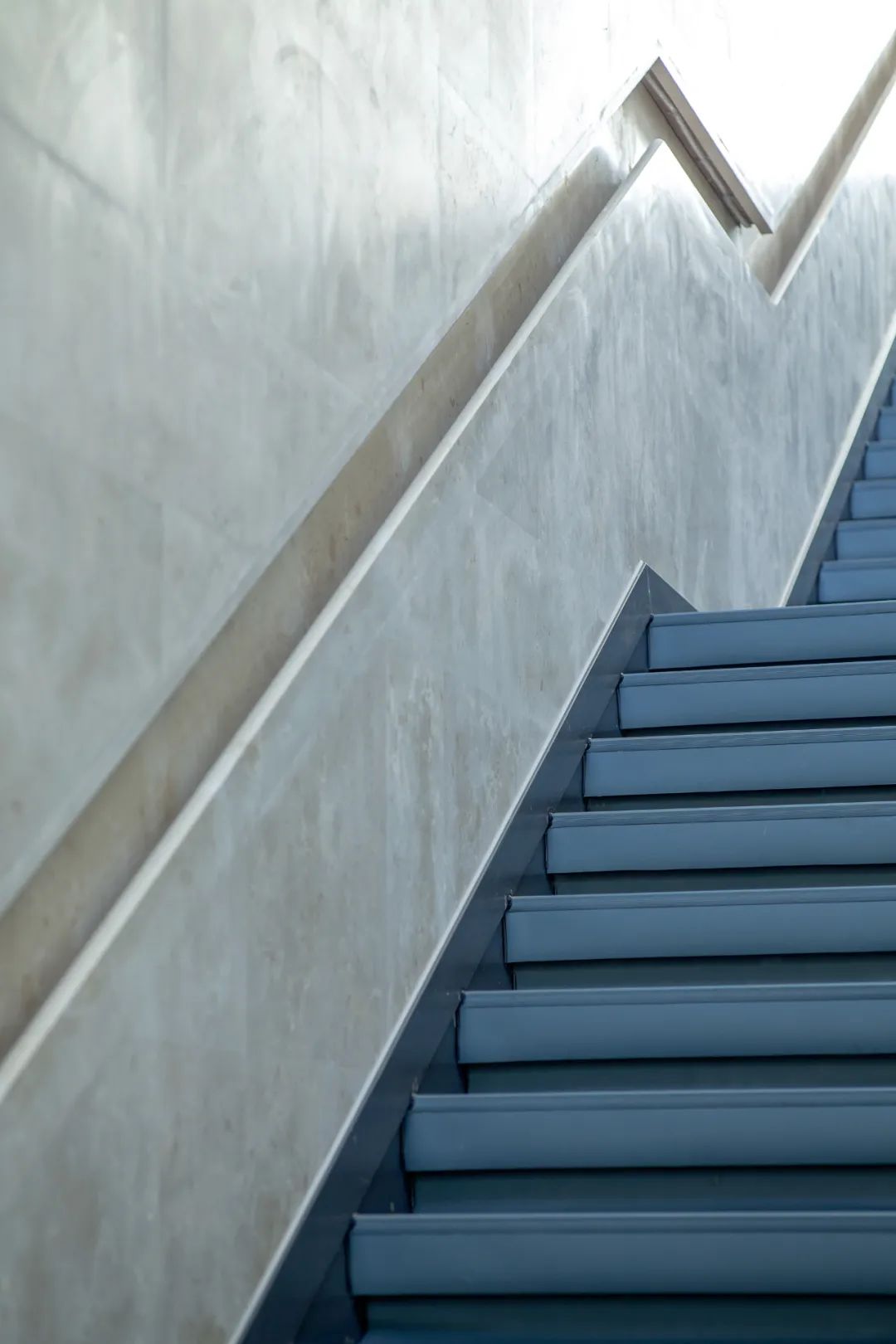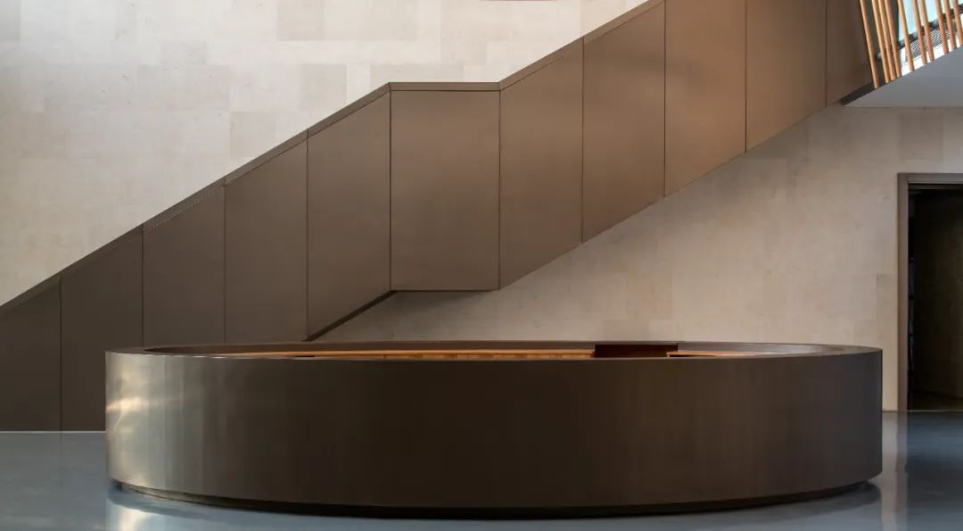 通往二楼的楼梯用石材内凹做的扶手,显得干净整洁,与整体调性相匹配,这也是整个项目里面工艺要求最高的地方。