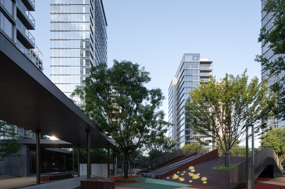 立体维度对公共与私密的区分 摄影:直角建筑摄影场地西、南、北侧均为高层住区,北侧与城市主干道相邻,而东侧朝向西安植物园与城市公共绿地,场地景观方向明确。