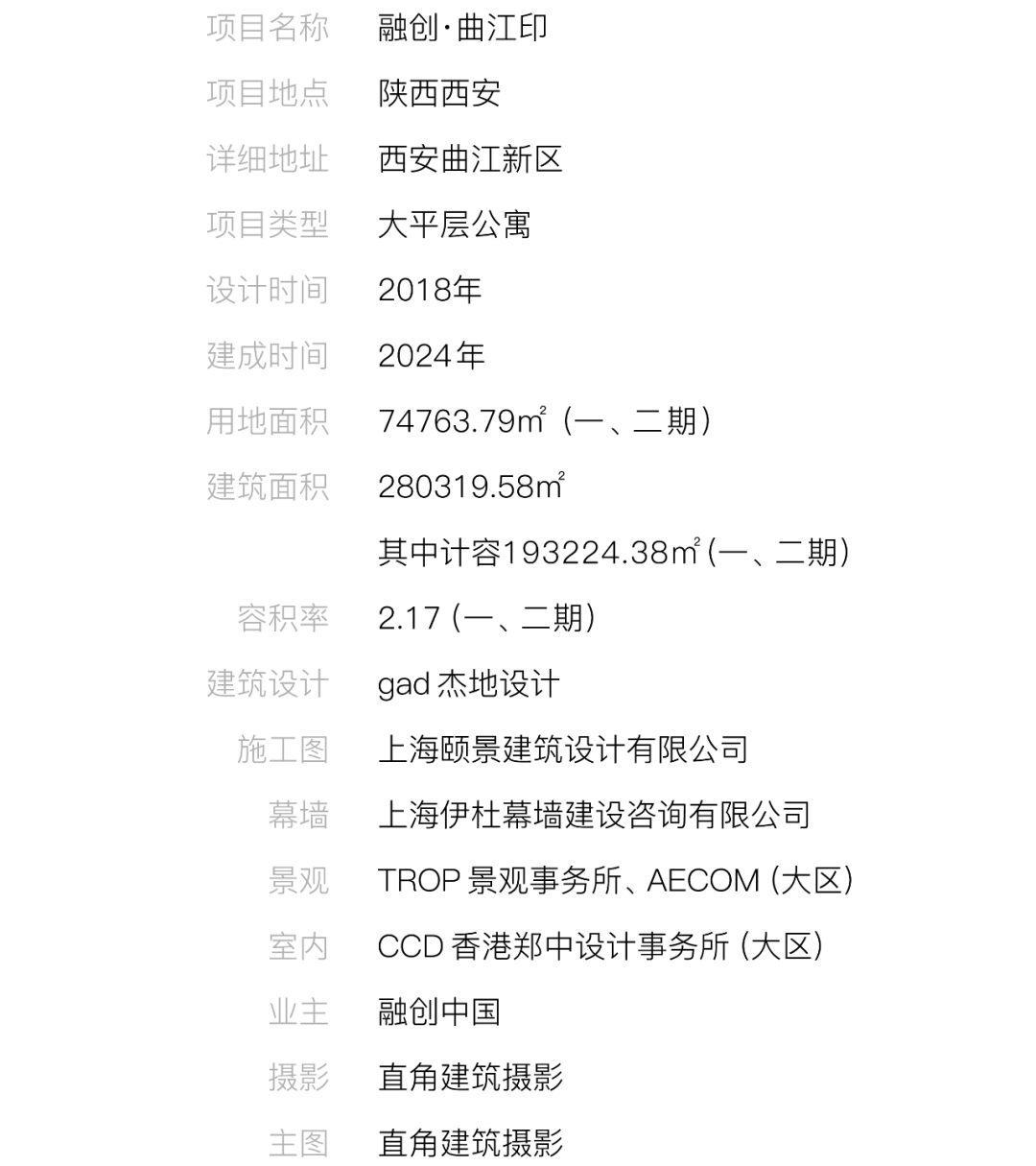 项目位于西安东南曲江新城,距主城核心区 9km,紧邻城市快速路,周边汇集产业区、综合公共服务中心、西安植物园等城市资源。街巷是西安悠久历史文化和生活记忆的载体,景龙池、索罗巷、案板街……古城内道路呈棋盘结构,交错有序,整齐划一;古城墙外道路则以环状加放射状的新城规划划分街区。当下高强度、大尺度的不可逆开发趋势让城市与人和生活的关系疏离、冷漠,我们尝试通过设计在曲江印中,将传统亲人的、充满烟火气的街巷尺度及其中的生活再现,在现代社区中唤醒城市记忆,激发新的生活活力。