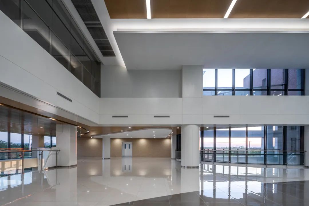 建筑形体设计别致、具有现代气息,蕴含生命般的力量,呈现出包容的姿态,温润而含蓄,低调而内敛。建筑与周边环境自然和谐共生,充满生机。
