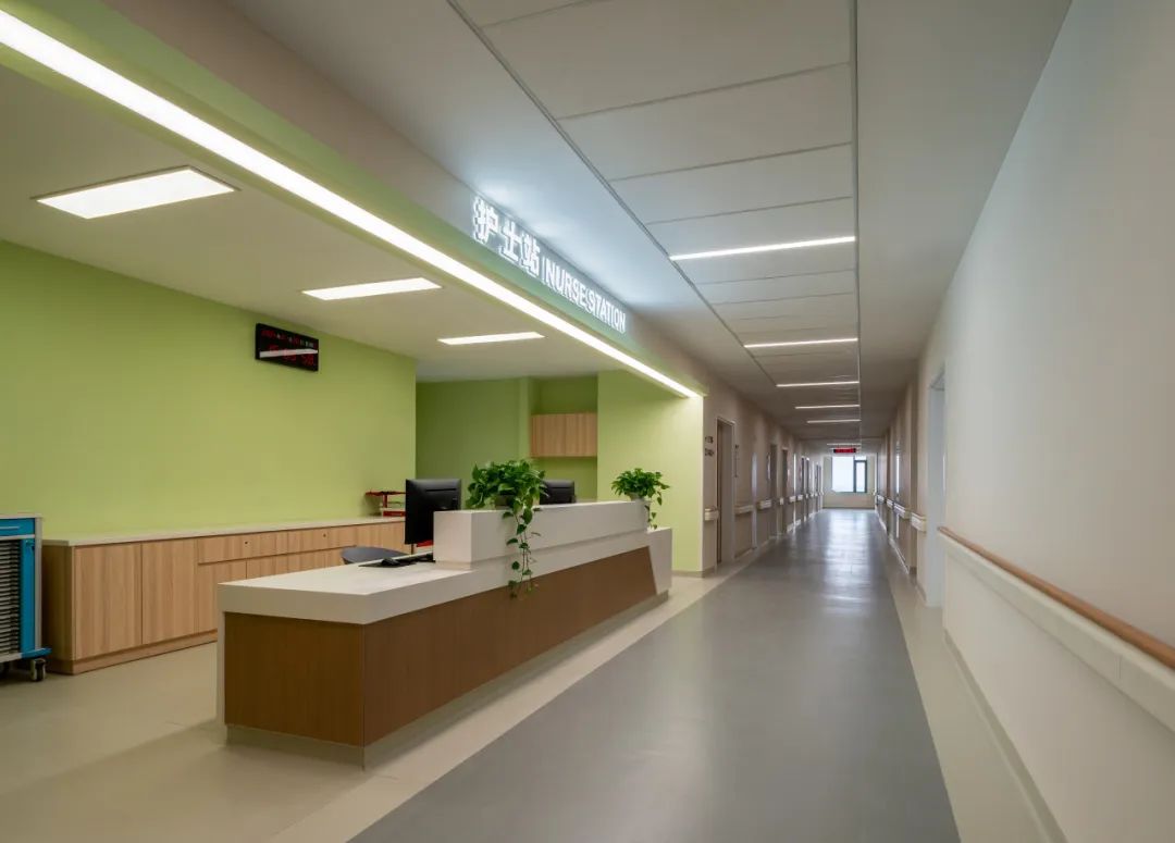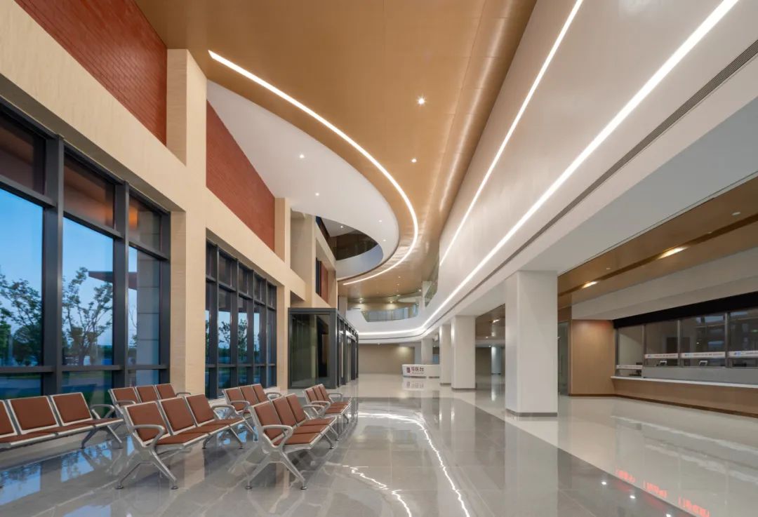 设计旨在为患者和医护人员打造舒适宜人的环境,以地下一层的景观庭院为核心的公共区域,有机地串联起医院各功能空间,使医院在绿色生态的环境中高效有序地运作。高大宽敞的入口,阳光明媚、绿意盎然的公共休闲区,精心雕琢的细部构造,力求打破旧有模式,打造耳目一新的就医环境,充分体现以“病人为中心”的根本原则。同时,选用生态、环保的材料,营造健康、节能、舒适环保的室内空间,使得人们能够放松身心、舒缓情绪。