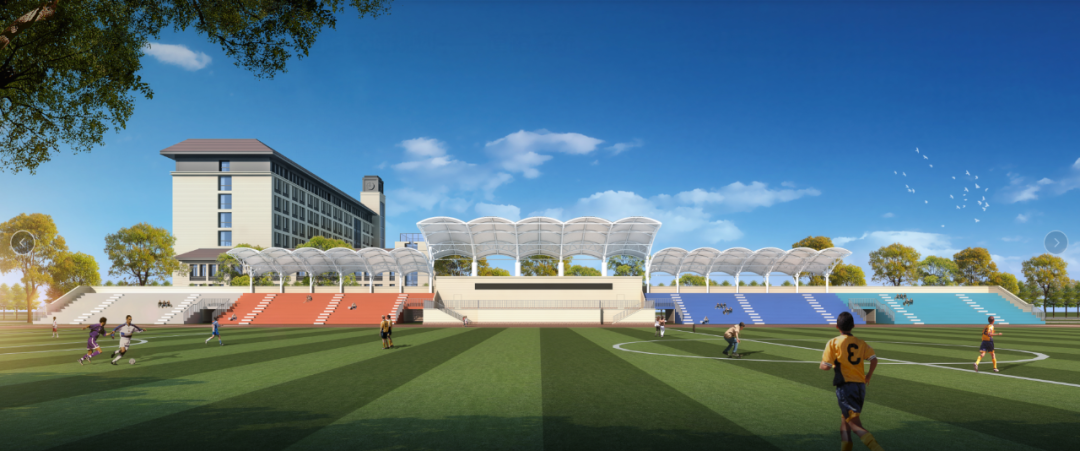 ▶ 宿舍楼:设计在充分考虑功能要求的基础上,采用竖向构图手法,打造庄重、典雅、大方的生活区形象,宿舍区紧邻教学区与食堂,方便使用。