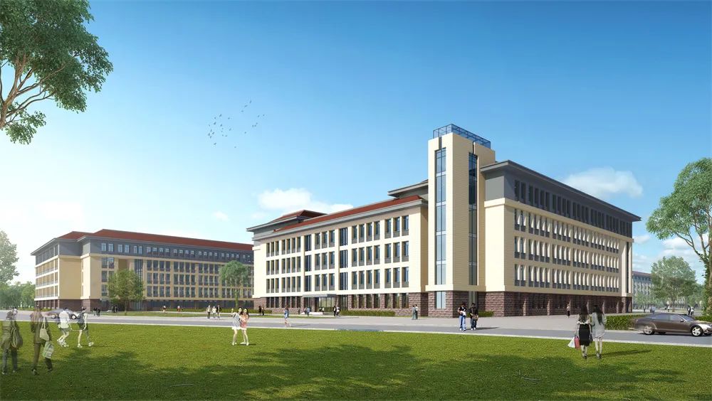 ▶ 教学楼组团:立面采用古典的设计手法彰显高等教育建筑的端庄,用形体的错动刻画建筑的灵动。平面采用庭院式的布局形式,适应当地气候,最大限度抵御冬季的冷空气侵袭。