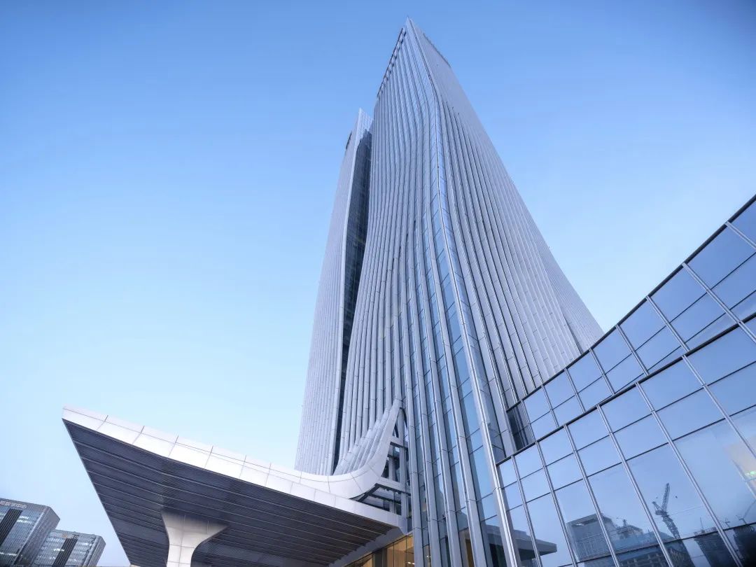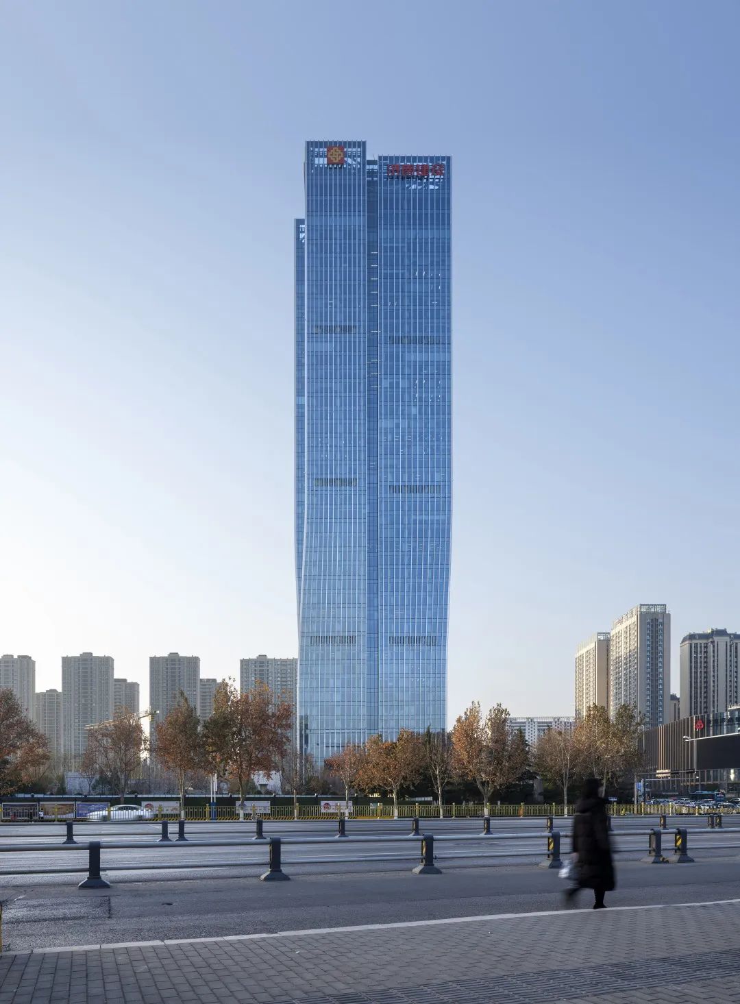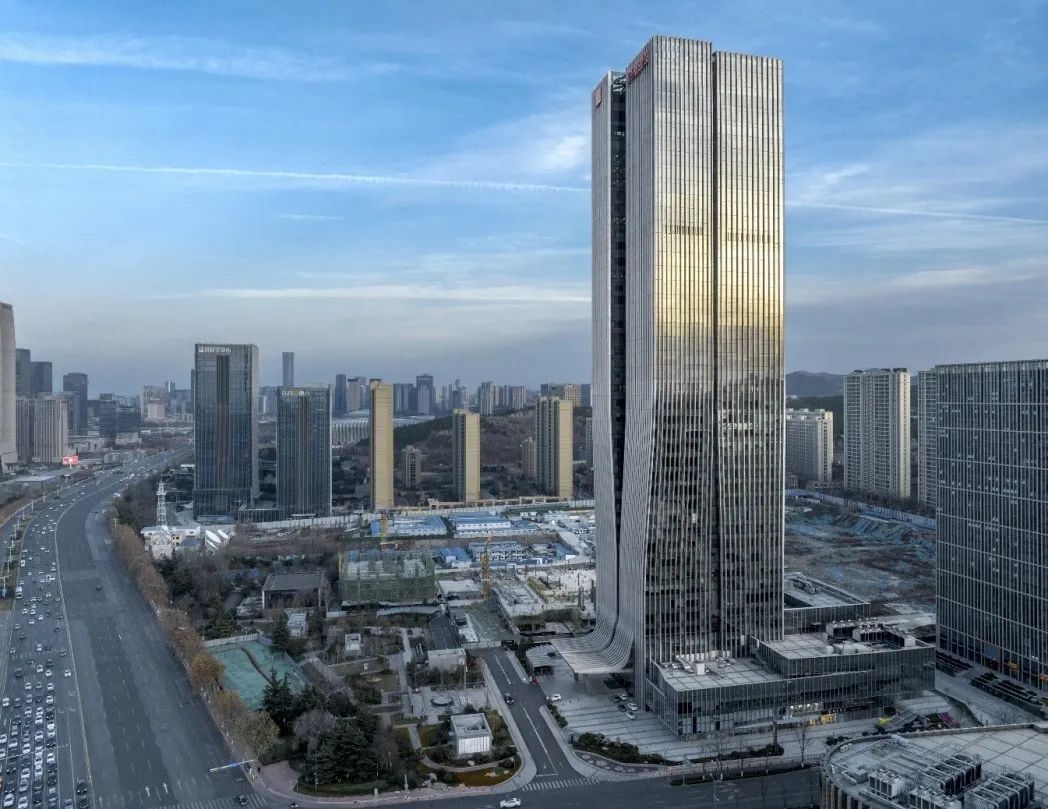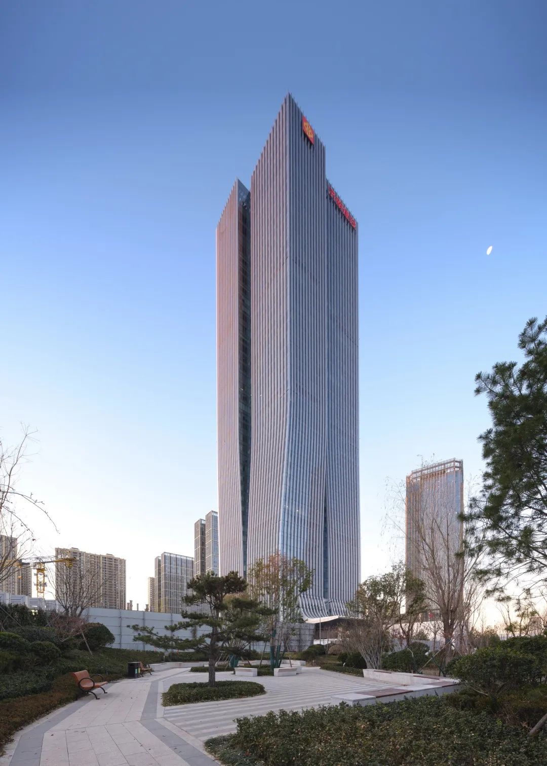 山东黄金国际广场位于济南奥体中心西侧,与东侧的济南汉峪金融商务中心区遥相呼应,是济南城市新一代高层商业建筑的代表作品。CCDI的设计方案出品于2015年,整座建筑于2021年完成土建工程,2022年正式开业使用。