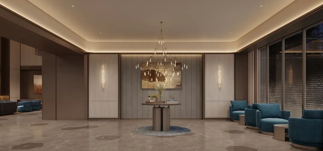 在大堂,奏一曲空间美学的华丽奏鸣。端景台上,壁画与水晶灯珠联璧合构筑独特的视角领域。向右偏移,休息区与金色篝火相互映衬,营造奢丽温馨的社交场域。而在前台,巨幅的水晶无限镜如同一面魔镜,层层递进的视觉效果令人叹为观止,加上顶部优雅起伏而流畅的线条,天花板的细腻融入其中,达成动静间的平衡,流露出无尽层次。