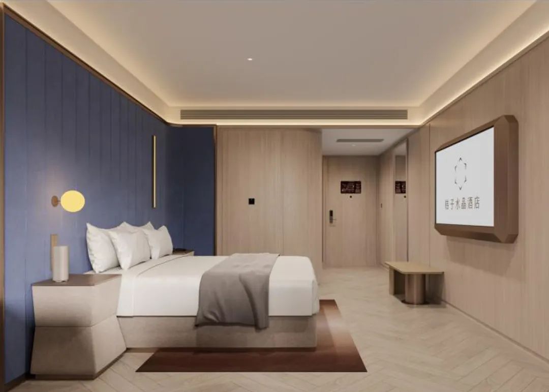 水晶设计理念融合现代酒店行业追求坪效与体验并重的创新方向,在这一全新构思下,酒店空间被赋予了更多的动态元素与互动体验,同时在材料的选择上,通过与质感木材的结合,又为空间增添了一丝温馨的氛围。使在这片灯光闪烁、乐声洋溢的空间中,每一位旅人都将能体会到生活的乐趣与多样性。