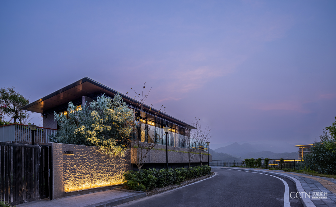 本地块地形三面为缓坡,一面与山体相连。建筑规划了8栋别墅,整体布局跟随等高线展开。设计将地形整合成两个标高,规避建筑相互影响的同时,也为每栋别墅获得了最大化的景观视角。在第一个标高上,建筑跟随等高线布置了7栋别墅客房,每户客房都有自己独立的观景露台,且独立入户。第二个标高为建筑的至高点,设计了一栋两层的别墅以及一个向湖面延伸的长相庭院,让住客一览周围的景观。