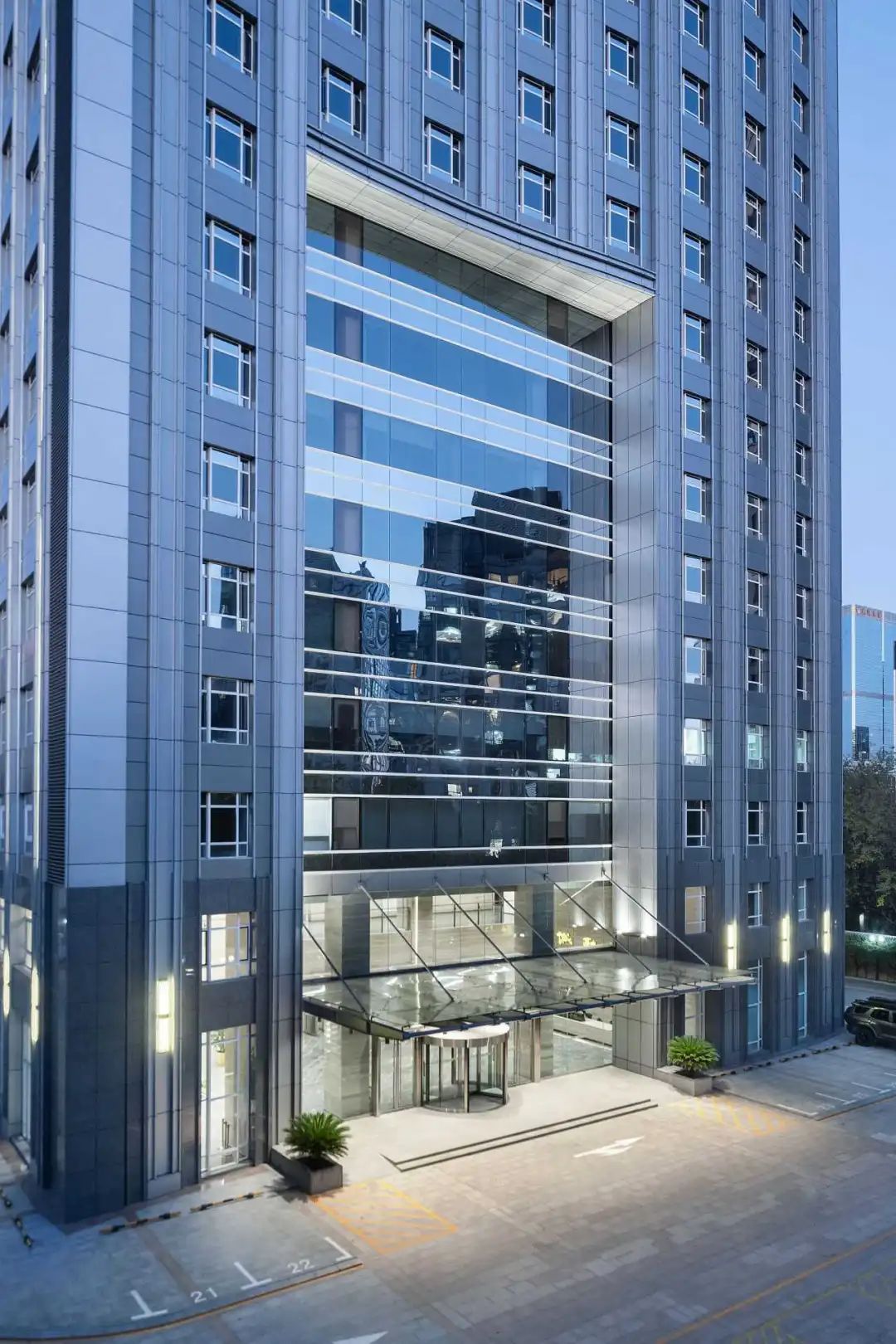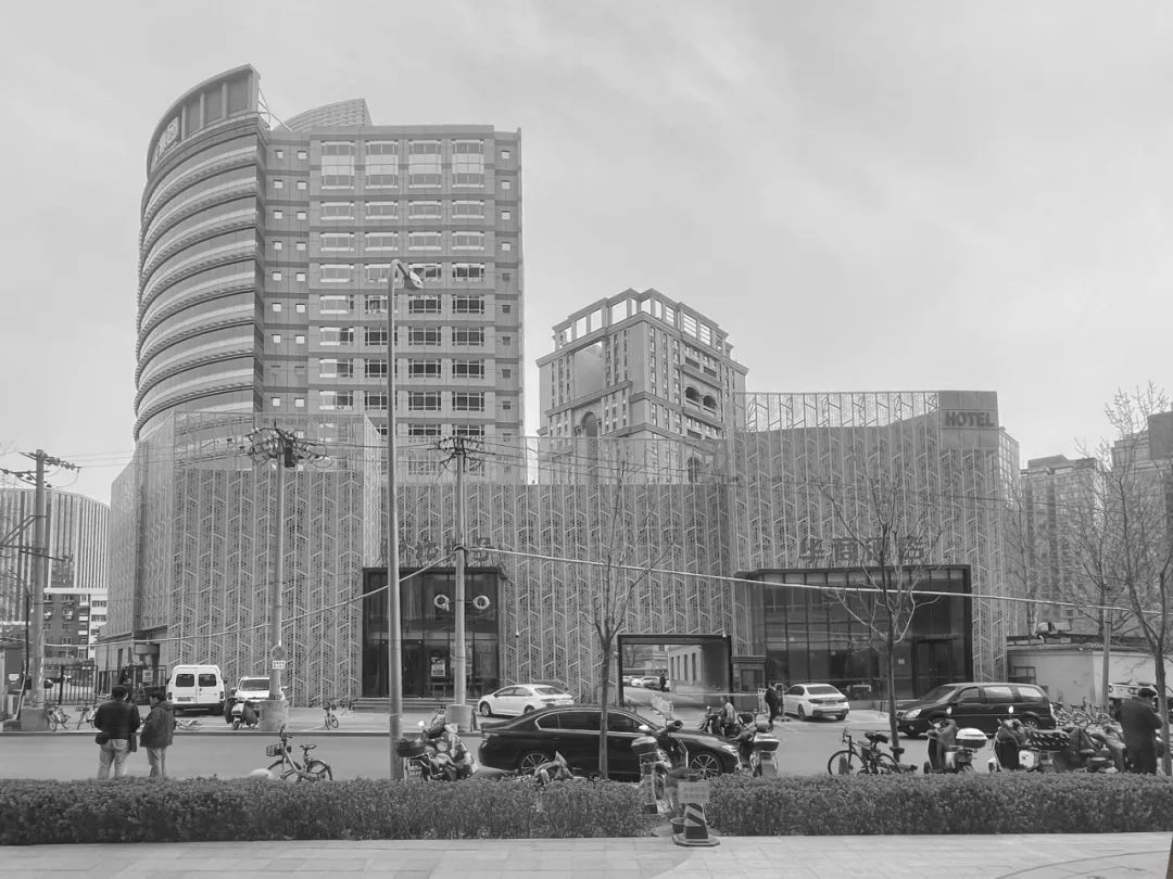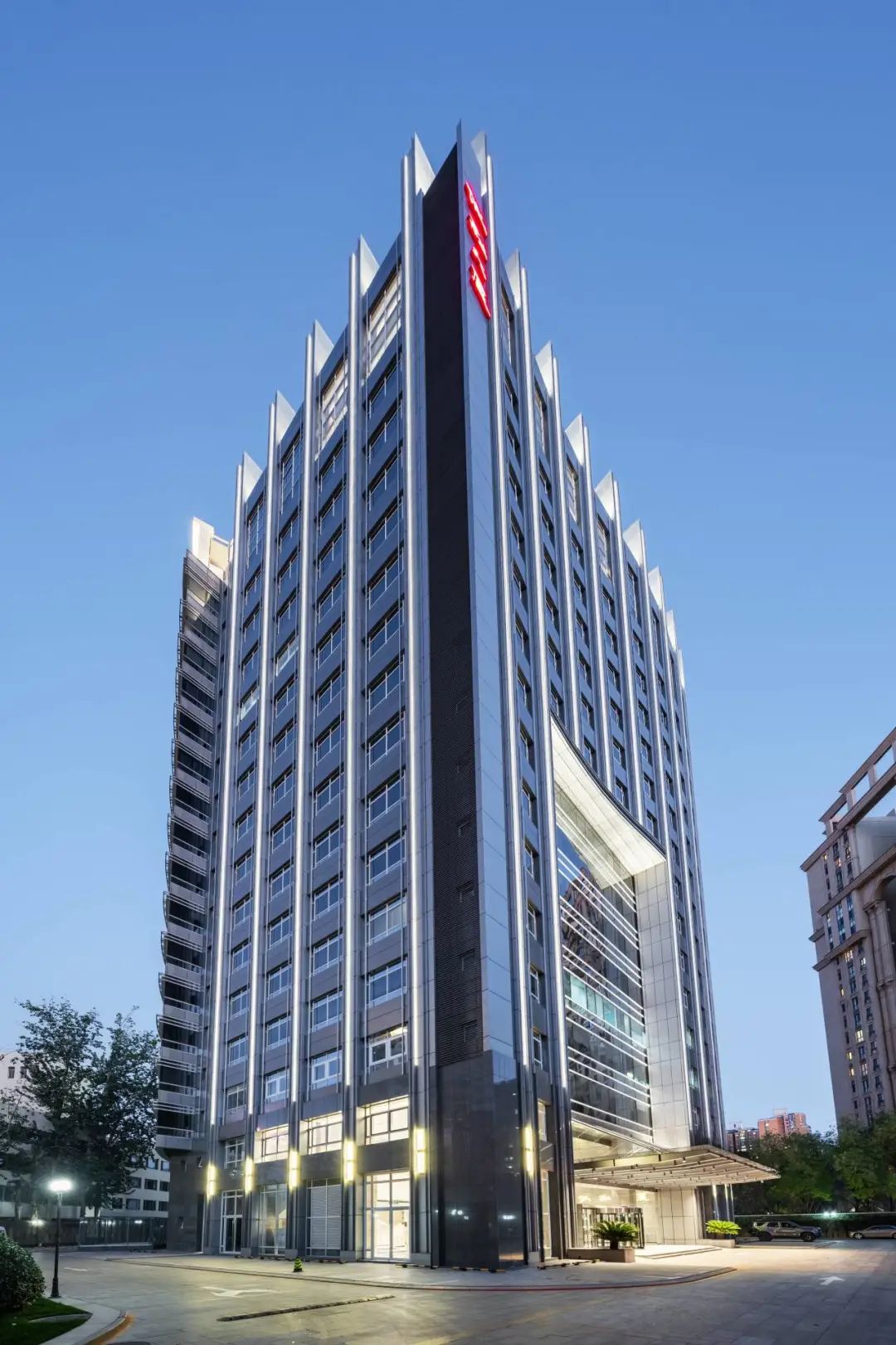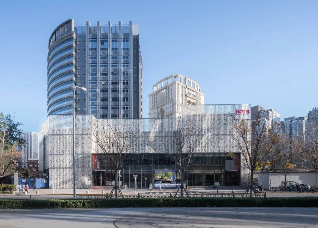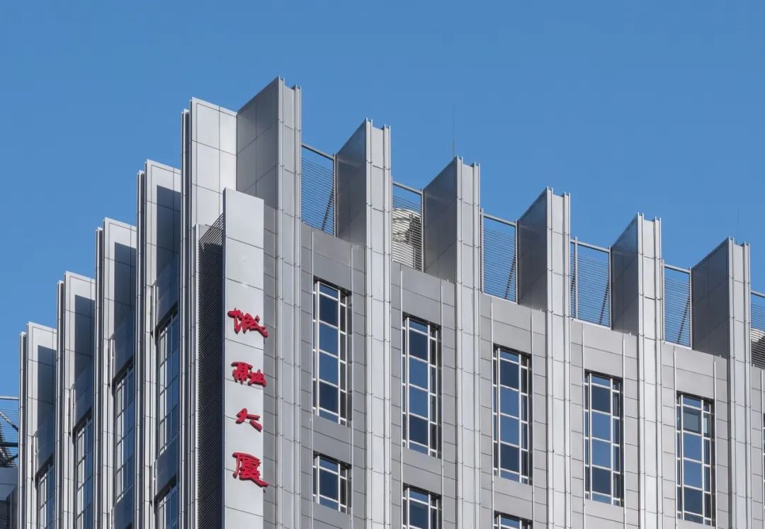 同时增加竖向线条的应用,削弱原建筑近乎方形的厚重感,建筑显得轻盈而挺拔。