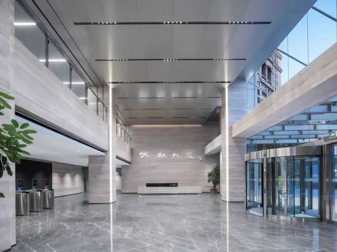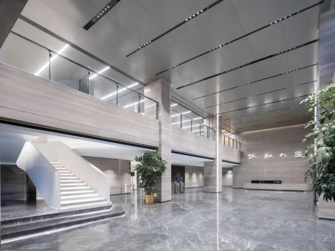 大堂利用简洁线条与竖向构造的设计,让空间显得更加高挑宽敞,开放而舒适。石材、金属板等材料的应用体现了耐用性与功能性,完美契合城发集团的发展需求。