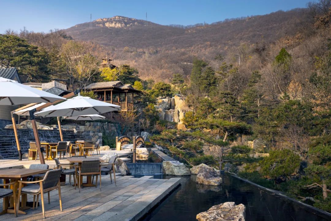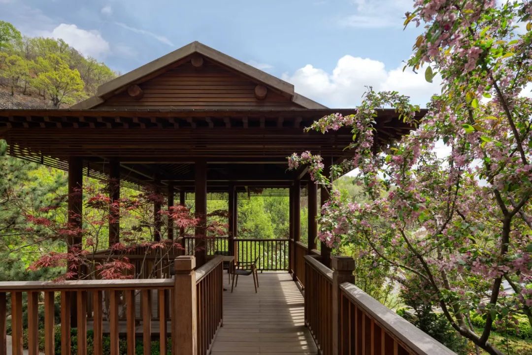 关于北京悉昙酒店,我们在上篇的“揭秘潭柘寺旁极致桃源山水的诞生”里介绍了酒店景观设计思想的形成以及酒店东侧入口区域自然景观的空间效果。在2022年5月首次开业后,酒店也因入口区域自然景观优美的空间效果而受到关注。