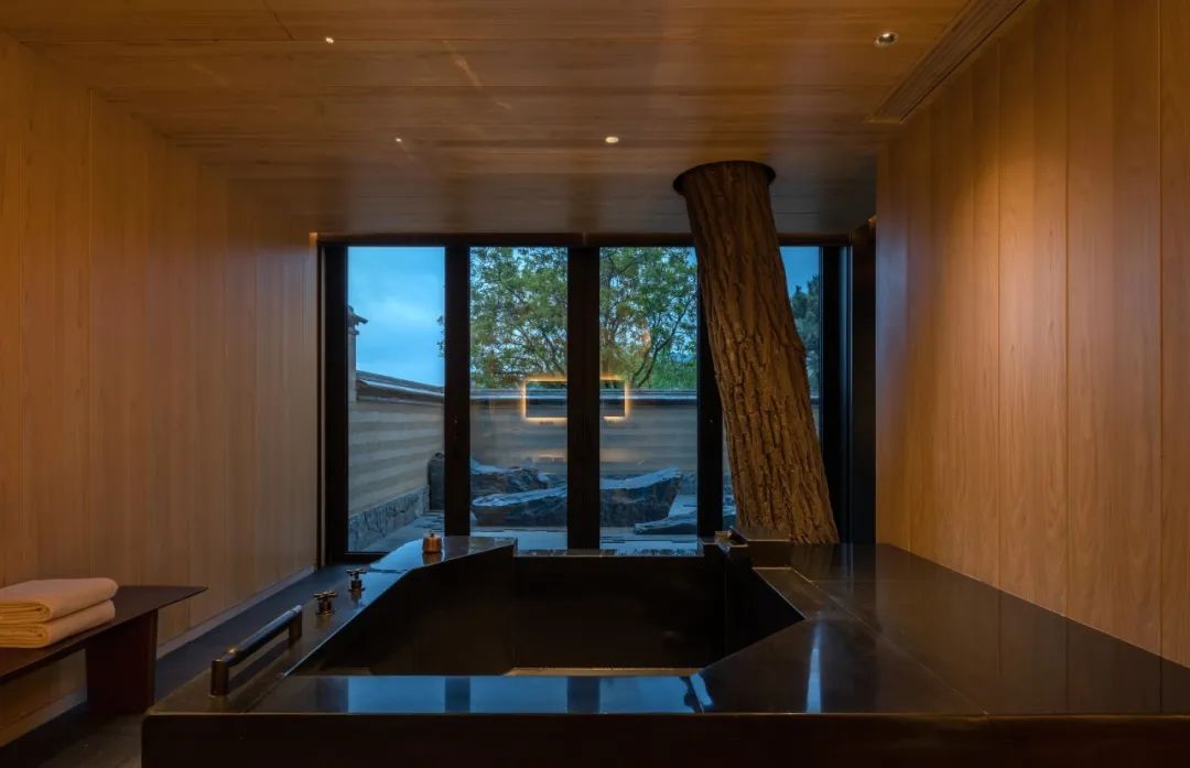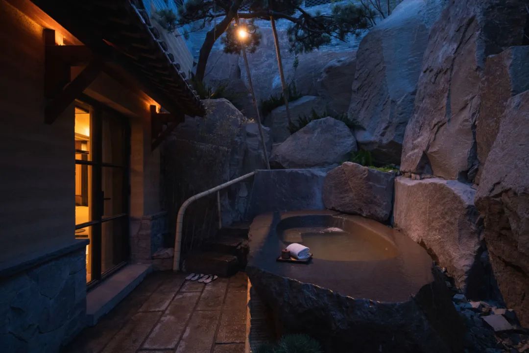 设计团队根据每一处客房所处的方位、地势和周边室外环境的特点,设计了各具特色的户外泡池空间,让宾客每一次入住都有不同的空间体验。