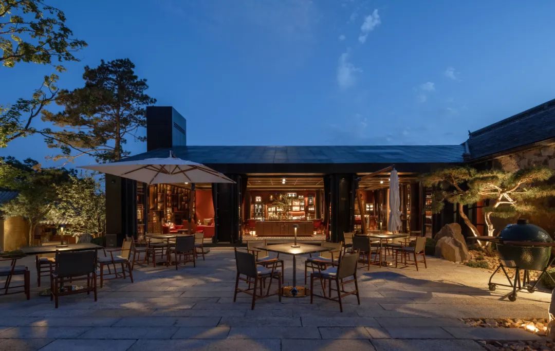 酒吧的室外也设有座椅,通过打开酒吧门窗可以在连通室内和室外的区域的同时,也延展了室内望向室外、室外望向室内的视野,让空间的体验更丰富。