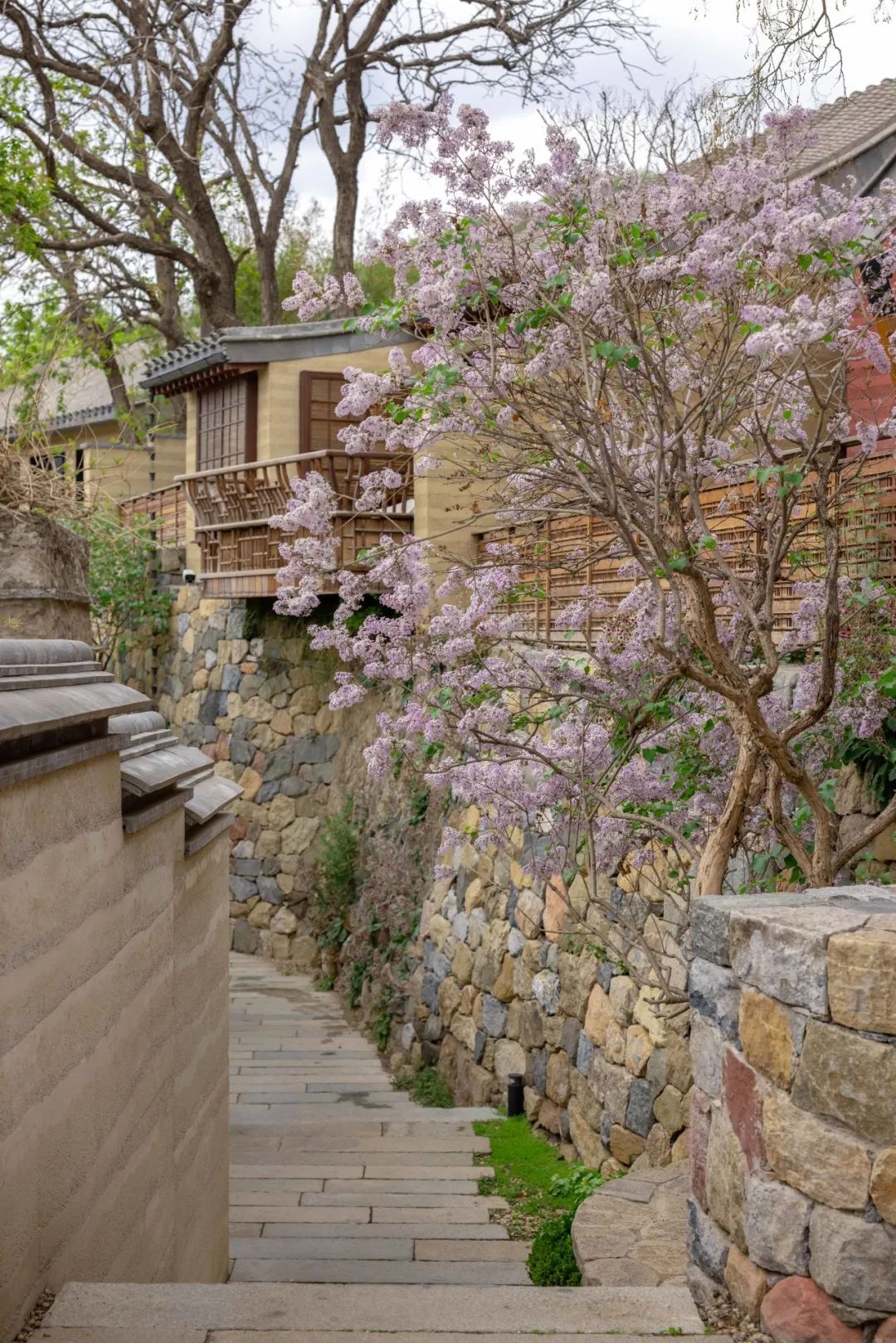 ▲历史老街旁的春花