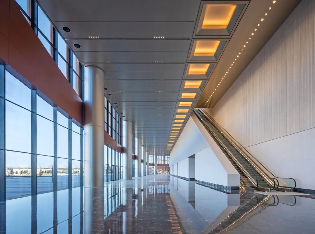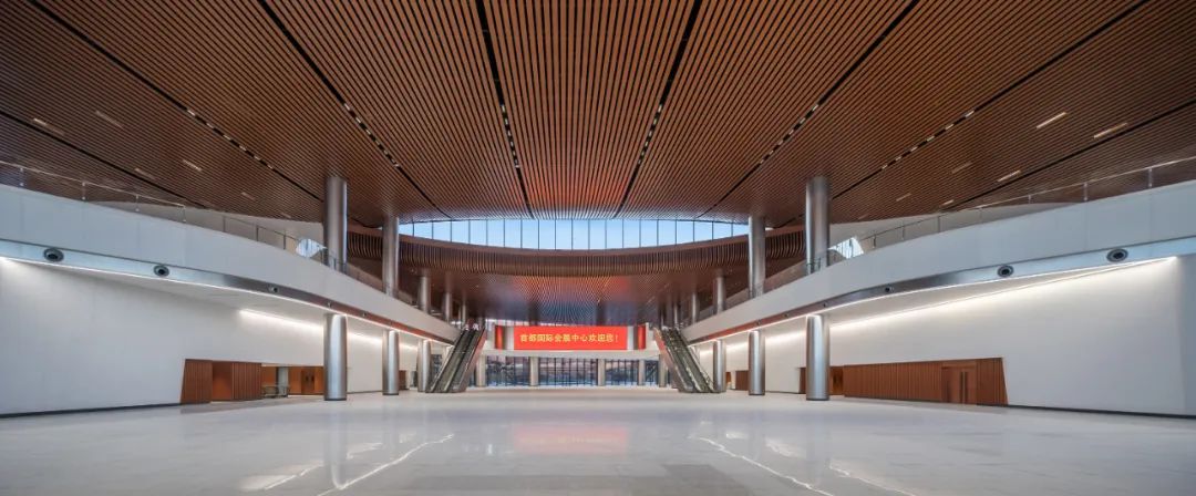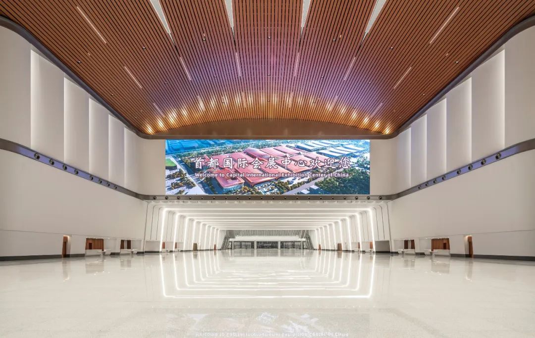 达到高完成度的过程是设计的再创造。优秀的落地工程除了需要高品质的方案设计之外,更依赖于方案深化、初步设计、施工图设计以及施工配合等各个阶段的精准执行。设计的创新性并非仅仅源于初始概念的提出,而是贯穿于设计全过程的持续探索。在项目实施过程中,概念需要不断修正与完善,细节需要持续充实与优化。首都国际会展中心在延续方案设计核心理念的同时,紧密结合功能需求与技术条件,通过全过程的设计创新,最终形成了与设计理念高度统一、和谐呼应的建筑空间。