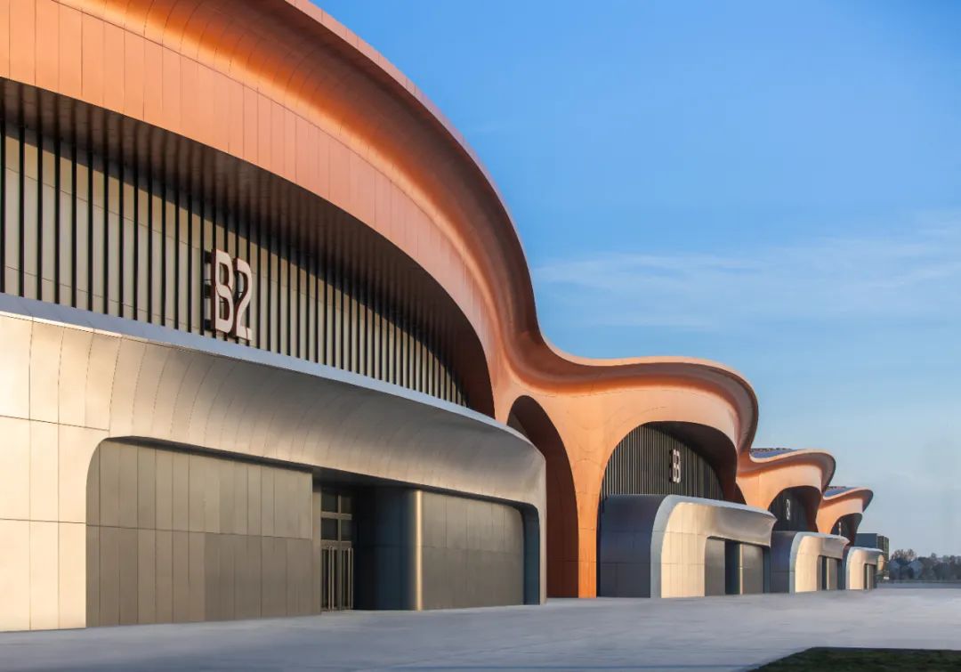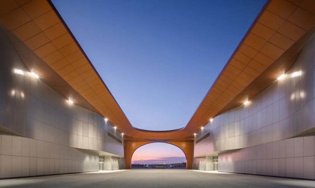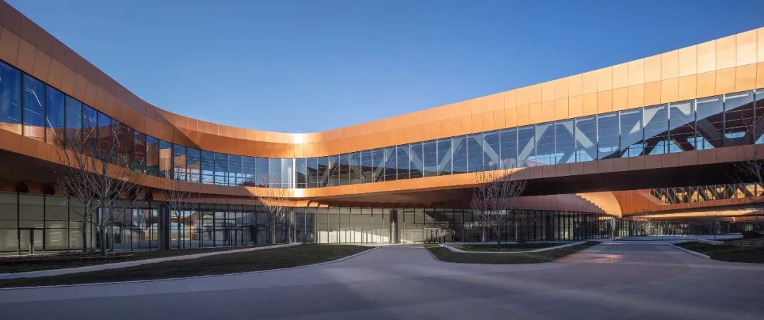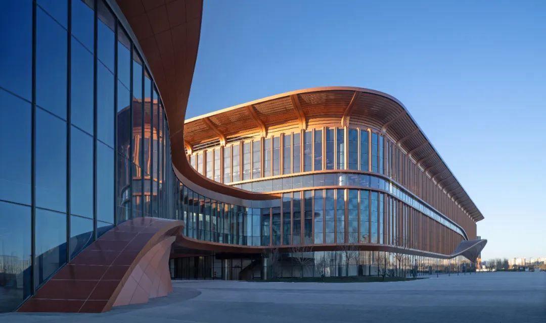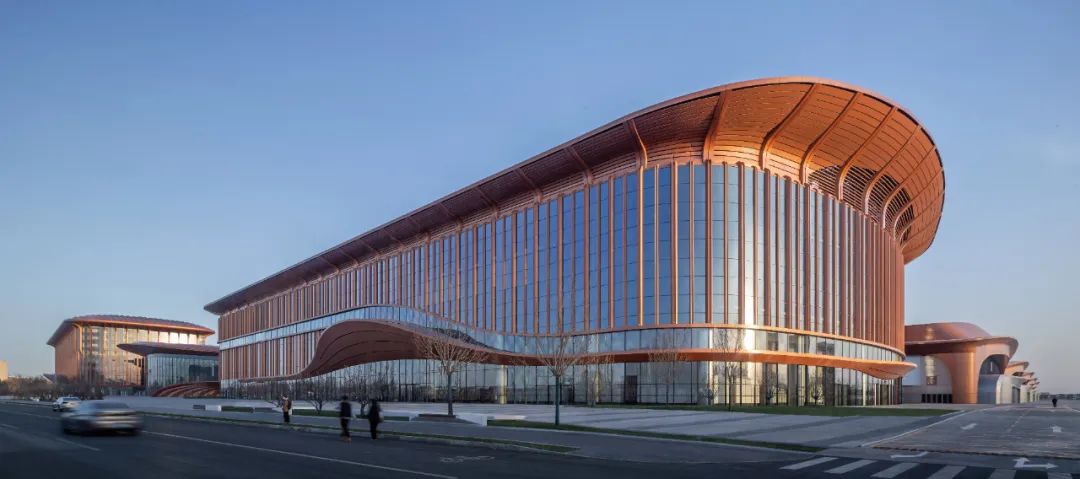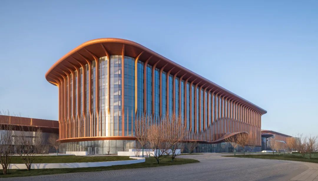 项目以“紫金丝带”为设计理念,丝带交织于各个展厅之间,寓意共建“一带一路”倡议,鱼骨式布局与新国展一期协调统一,展览空间对称布局,表达中国与世界互联互通之音。整个建筑通过合理的功能分区和流线设计,实现了各部分的互联互通和高效运营。
