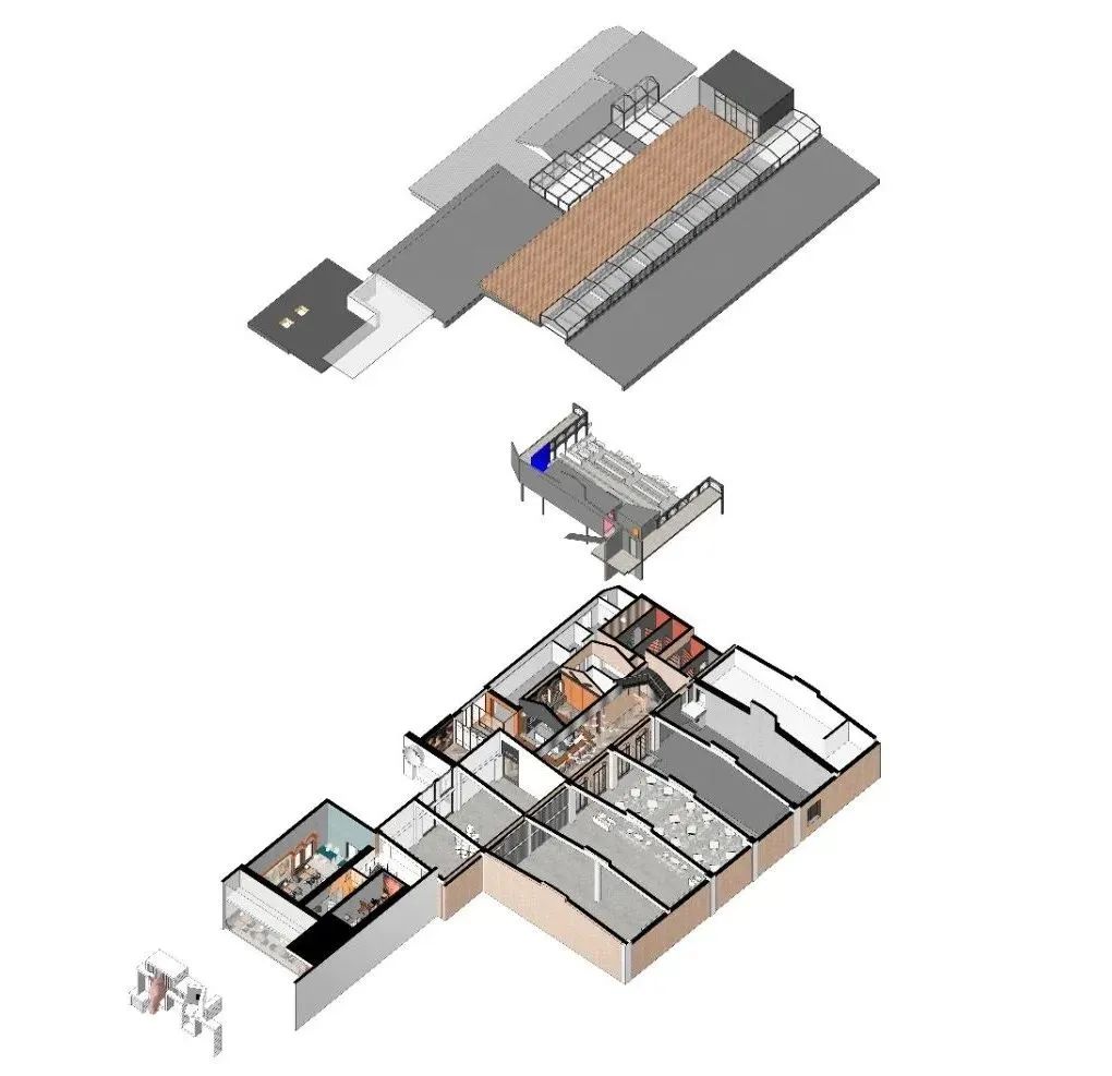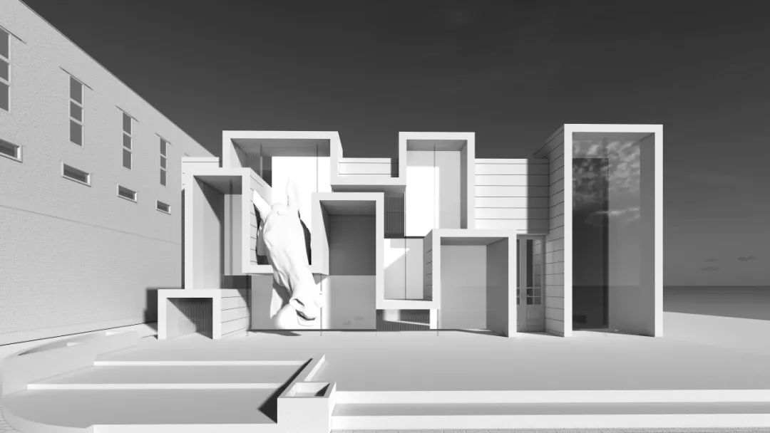 沉浸式戏剧空间,即环境戏剧的呈现,其核心不仅局限于内部空间布局对表演环境的塑造,同样重要的是,建筑外部形象也要彰显出“戏剧行动地”的独特韵味。为实现这一目标,设计采用一种超脱常规的语言表达方式,构建一种引人入胜的关联体验。