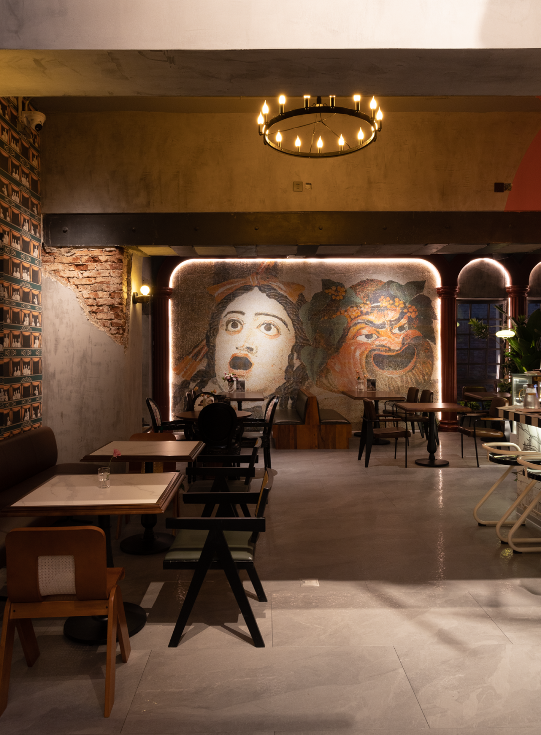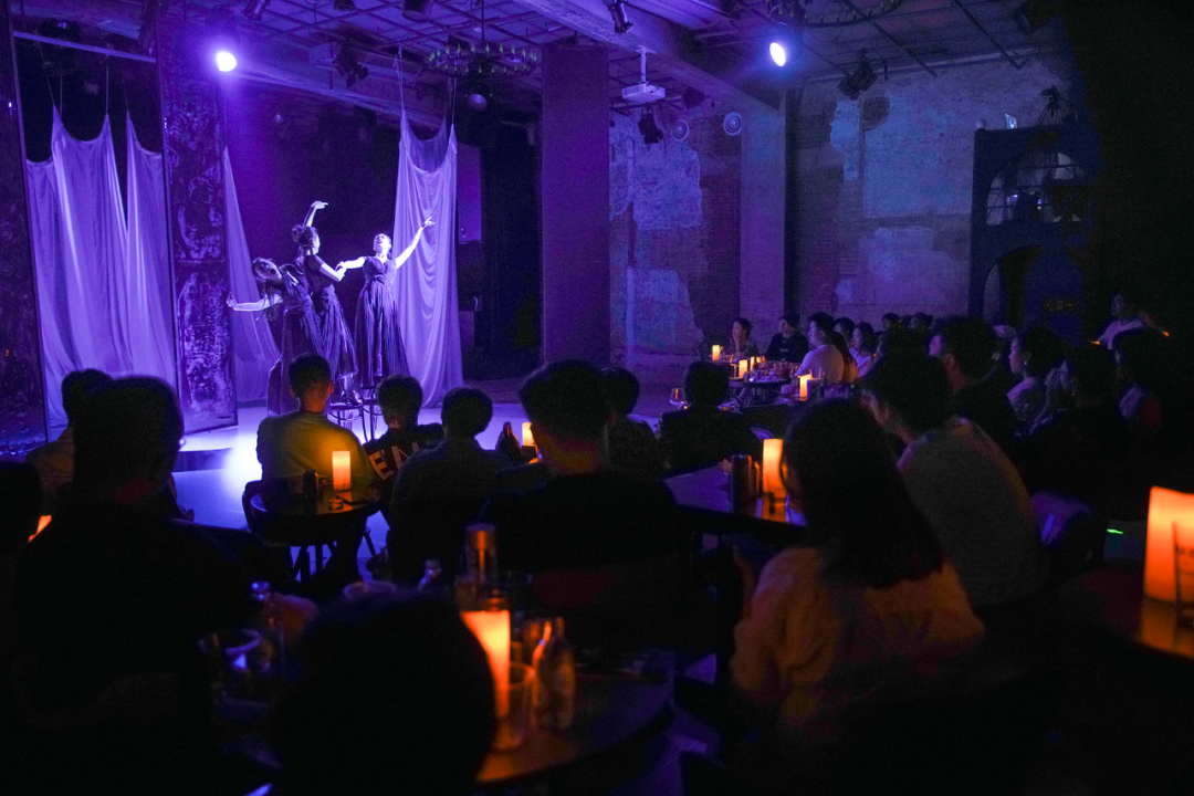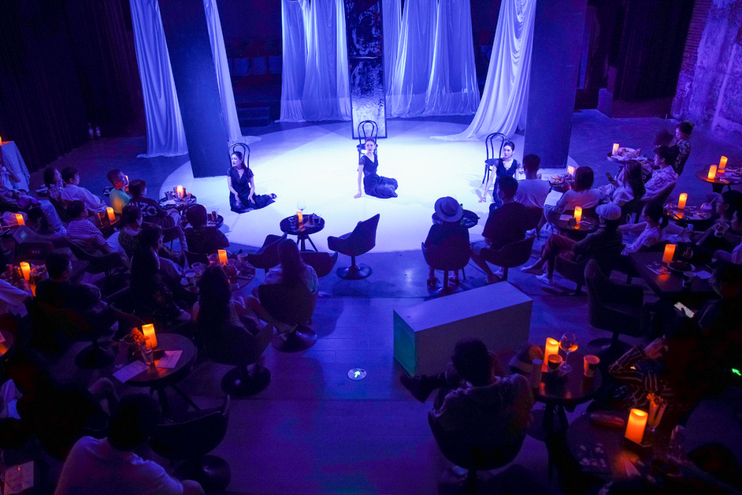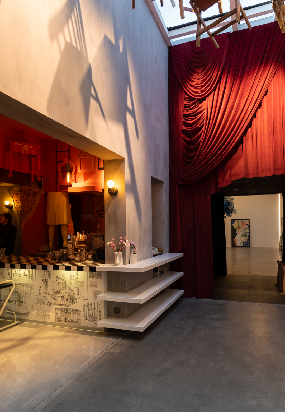 戏剧元素被渗透至建筑的各个角落,涵盖餐厅、酒吧、画廊、庭院乃至卫生间区域。这一设计摒弃了传统剧本的固定逻辑与叙述框架,转而着重于各场景戏剧性氛围的精心营造。在确保戏剧内容品质的同时,我们致力于通过多维感官刺激——视觉、听觉、乃至触觉的全方位调动,引领观众深度沉浸于戏剧世界之中。