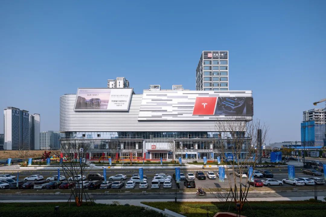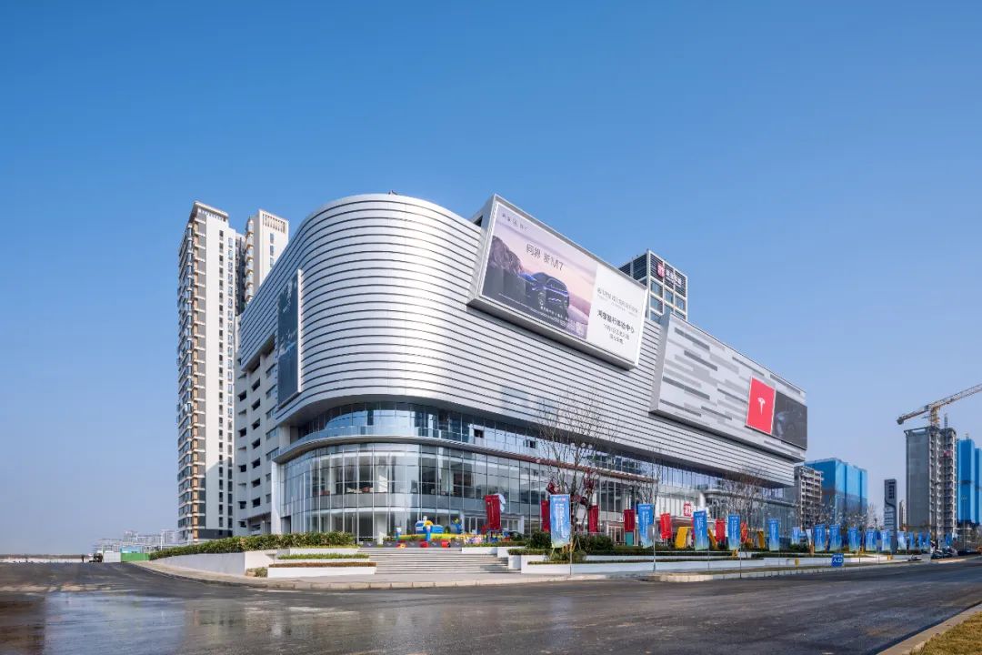 车城负一层至地上二层涵盖整车展贸、汽车生活、金融保险等业态;三层以特色餐饮等生活配套业态为主;四层至六层为新能源汽车交付中心、主力店售后服务中心及车管服务。已吸引特斯拉、华为鸿蒙智行等39家新能源汽车头部品牌入驻,构建起覆盖多场景的业态矩阵。同时汇聚融合传统茶文化与亲子娱乐的文化体验馆与儿童卡丁车乐园、打造商务社交新空间的咖啡旗舰店、汇聚高端汽车周边及定制化服务的汽车精品生活馆、满足消费者休闲需求的多元主题餐饮区、以科技感运动体验吸引年轻群体的卡丁车竞技场、探索线上线下融合的智慧购车模式的新零售汽车商城、提供“售前-交付-售后”全链路服务”的汽车交付中心等全套式服务体验,形成“展销服娱”一体化生态。