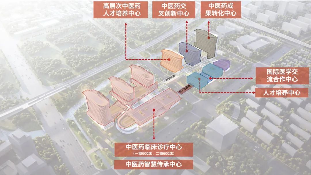本项目建成后,将建设完成中医药临床诊疗中心(一期600床,二期600床)、中医药智慧传承中心、国际医学交流合作中心、人才培养中心、中医药成果转化中心、中医药交叉创新中心和高层次中医药人才培养中心等若干中心,实现医、教、研、产互进互促,打造面向未来的中西医结合医学中心。