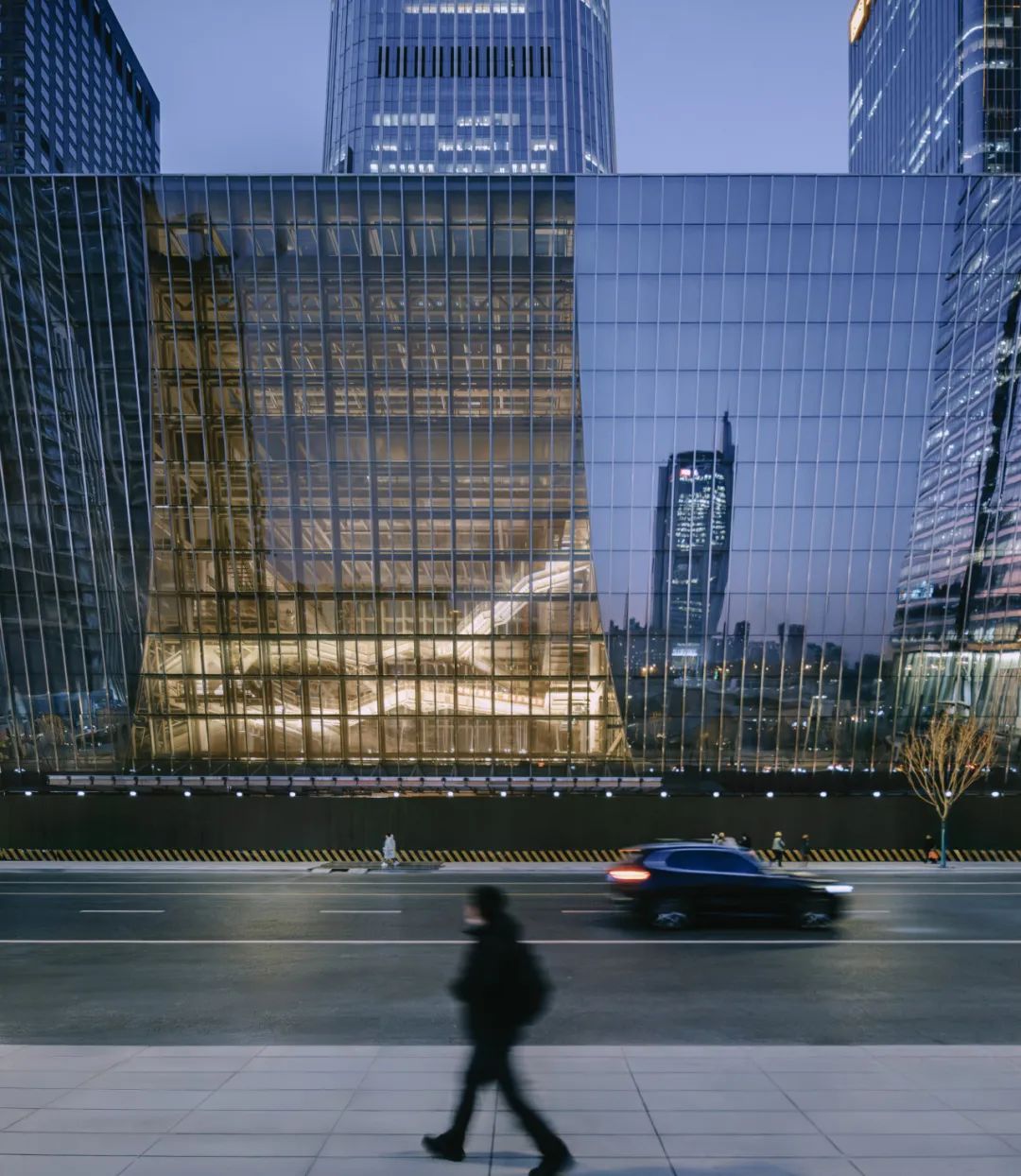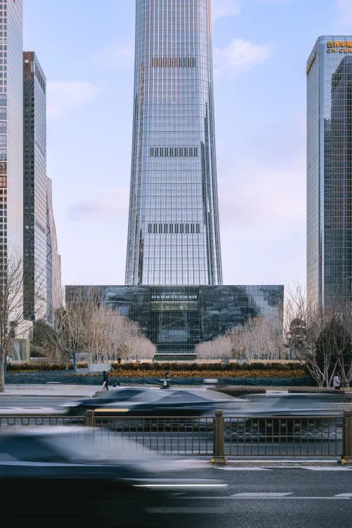 This “forward-leaning” stance also sets up a dialogue with the 528 meter high China Zun. Together, the tower, the cultural center, and the park define a north-south visual corridor—an urban composition of “one axis, three scenes” at the heart of the CBD.