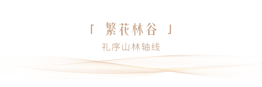 一条30米的“长林轴线”,引领您步入四季斑斓的“繁花林谷”。轴线水景潺潺,对景叠水诉说着生生不息的自然韵律。沿线打造灵动的“山林跌瀑”、璀璨的“琉璃光阵”、汇聚于“合樾聚场”。让中轴仪式感与山林野趣在此和谐共生。
