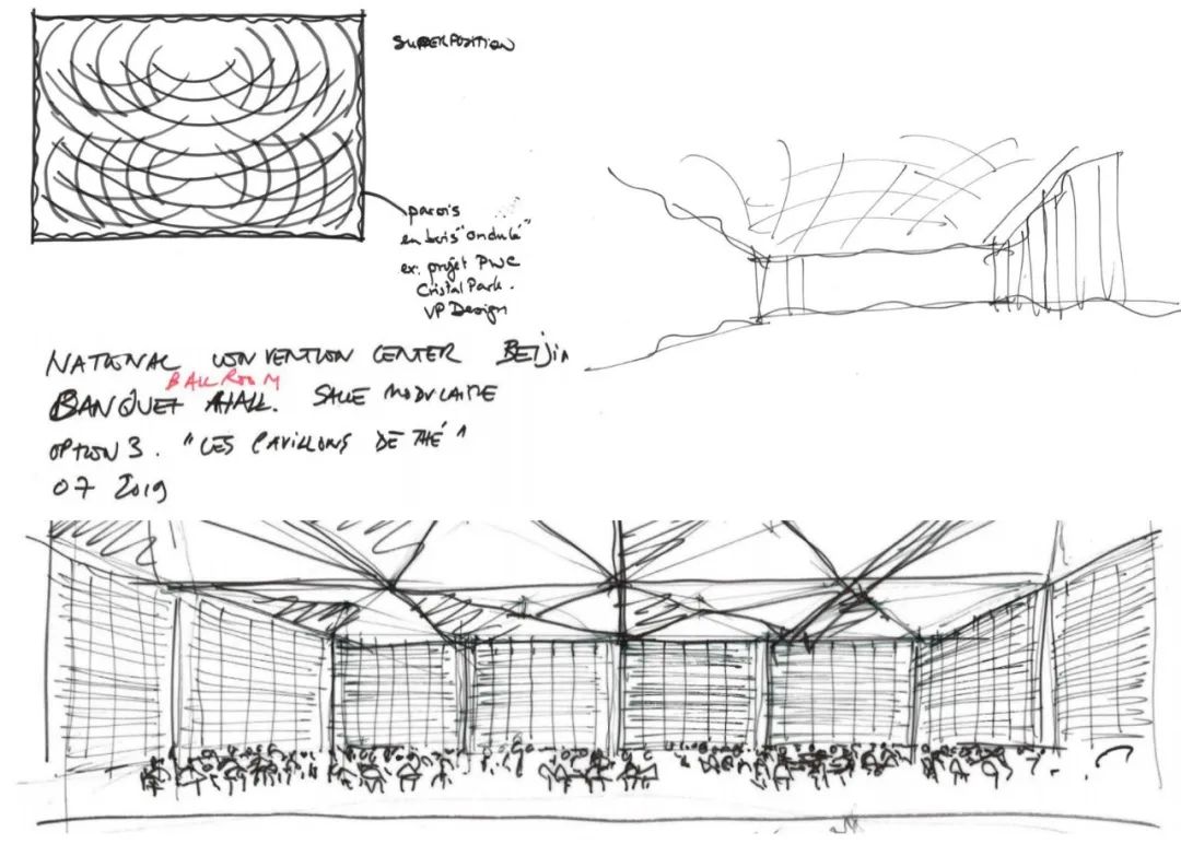 我们在这座国家级会议综合体宏大的建筑框架内,通过宴会厅"逍遥游"的鲲鹏垂天之境、峰会厅"和合共生"的天地圆融之美,完成了一次跨越千年的美学对话,让传统文化在现代会议空间中焕发新生。